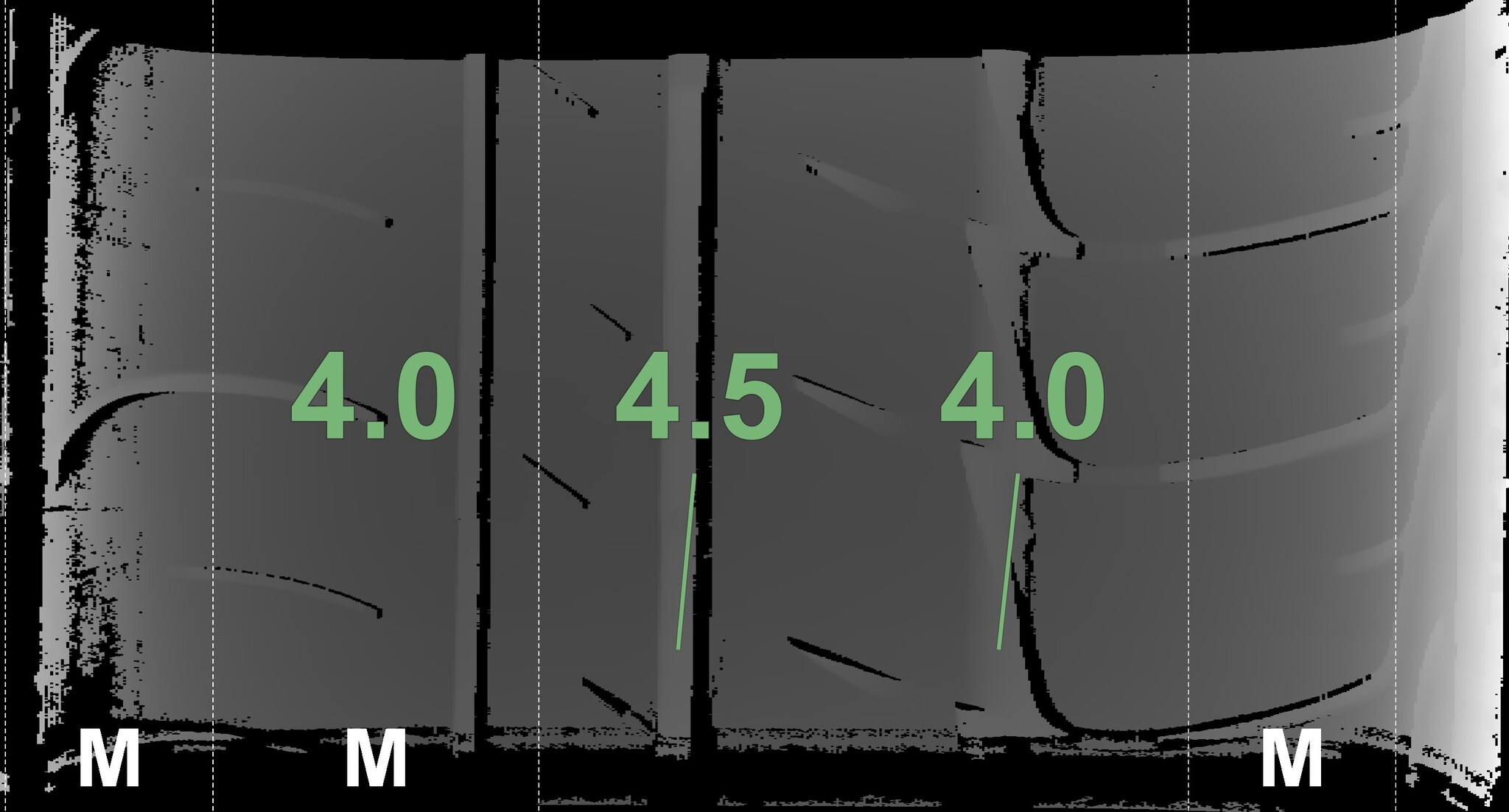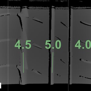 The measured tread depths and the details of the rims are shown above.