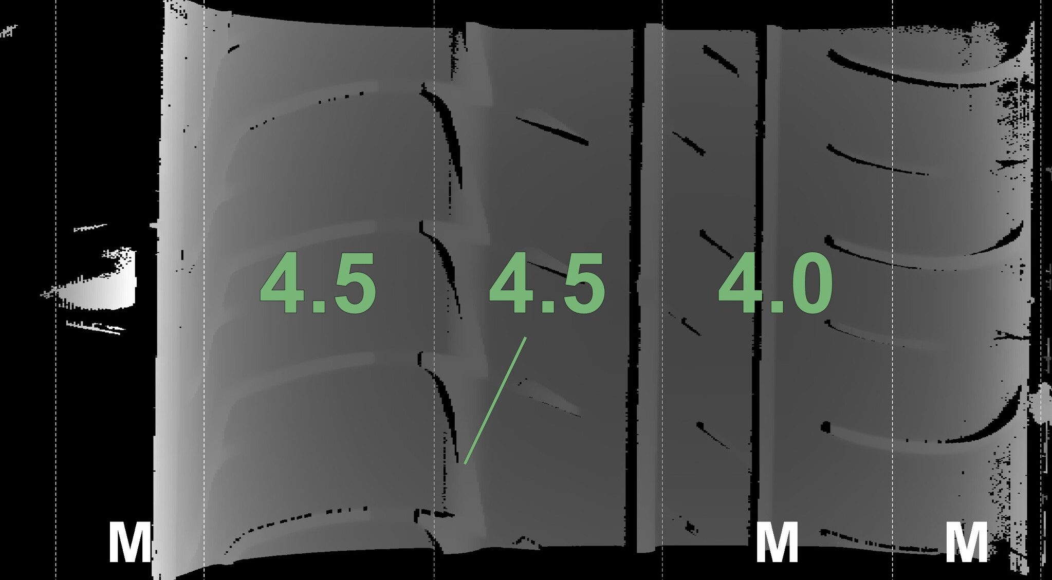 | Condition | Profile depth | DOT | Front Right | Used | 4.0 mm | 2720 |