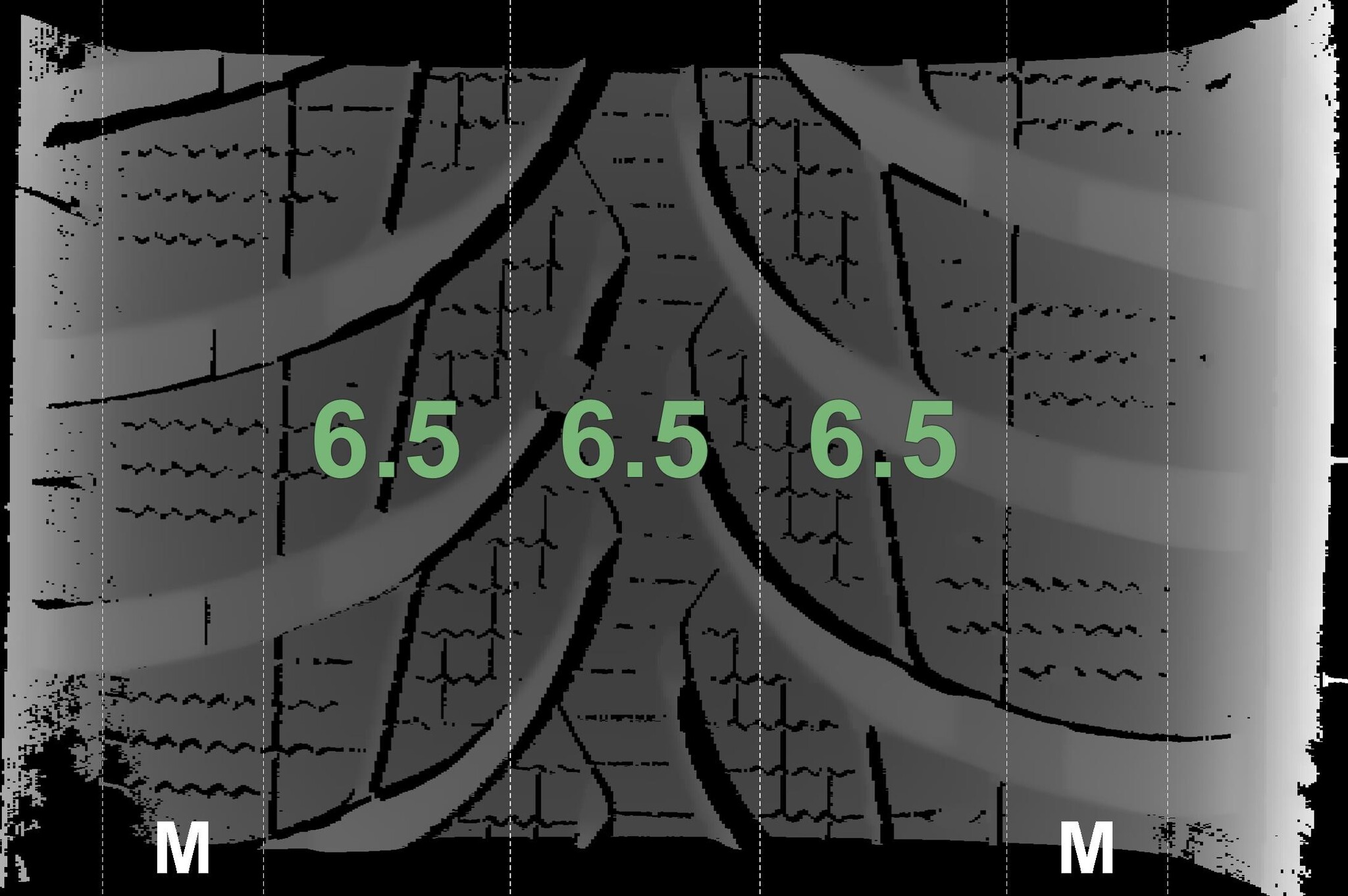 Condition | Profile depth | DOT | Rear Left | Demo studs still visible | 6.5 mm | 2621 |