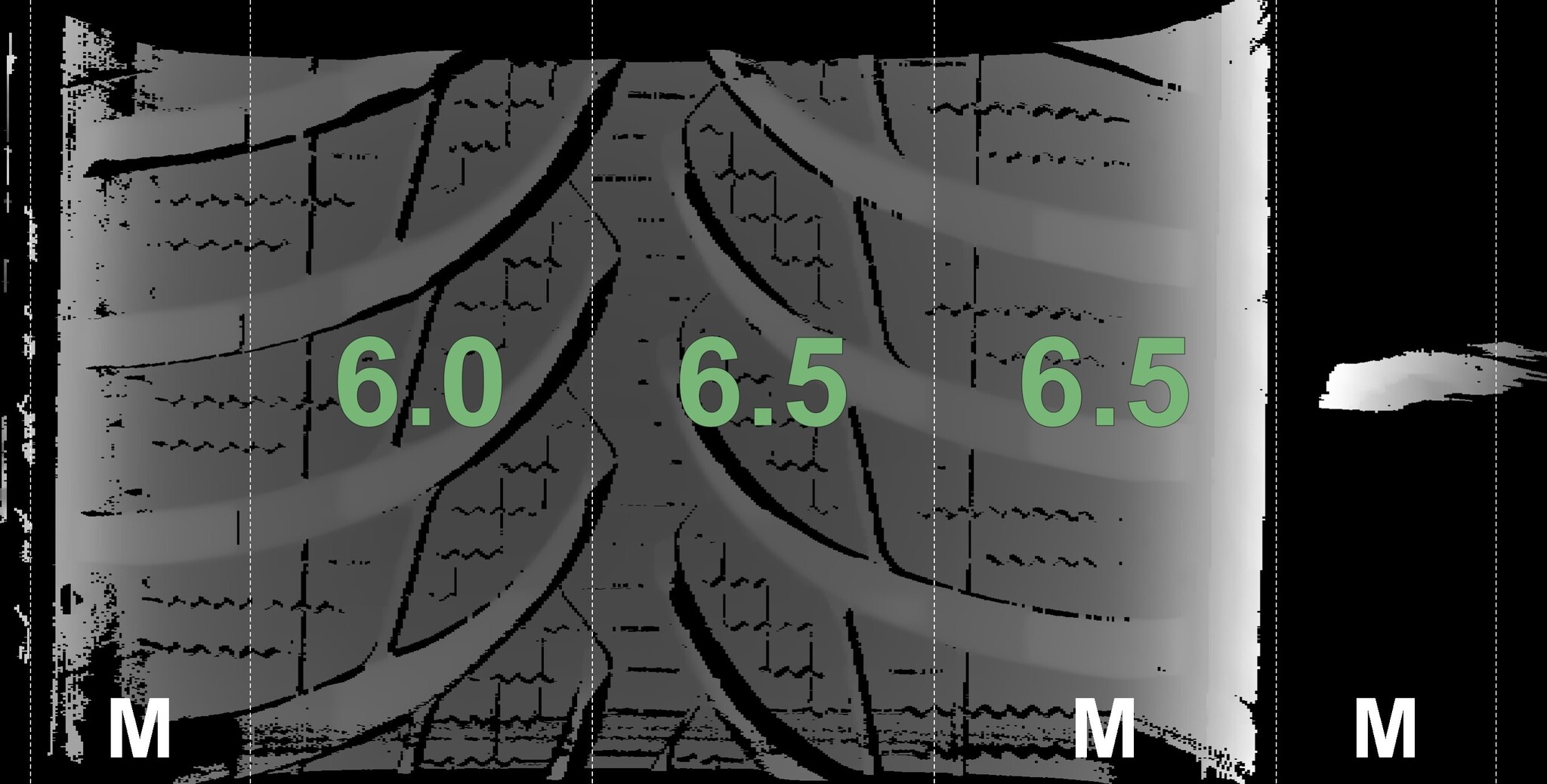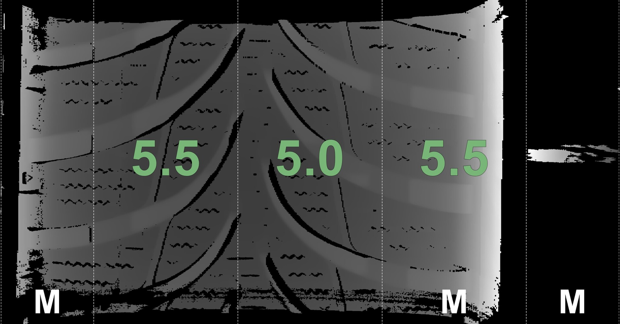The measured tread depths and details of the rims are shown above.
