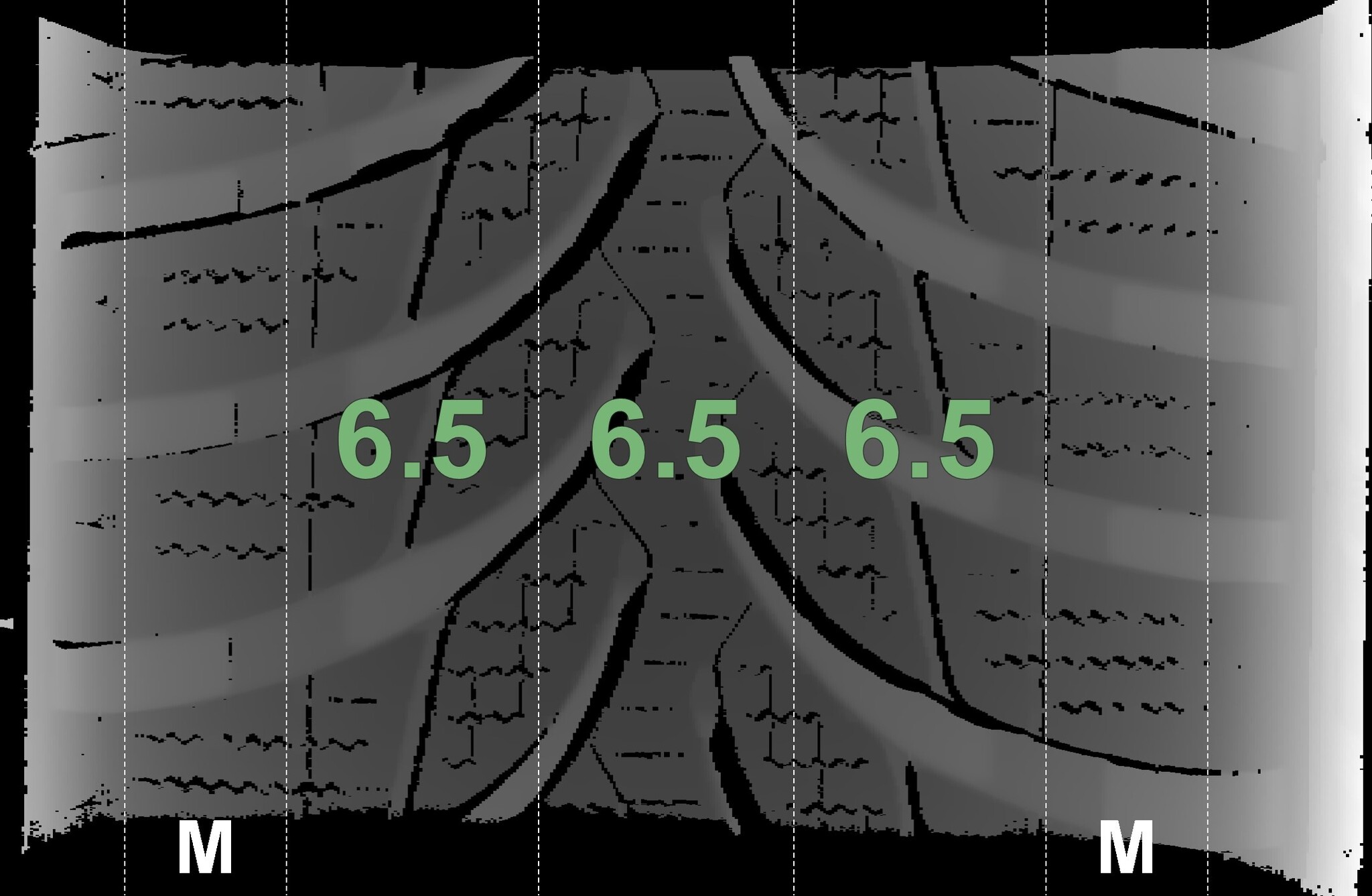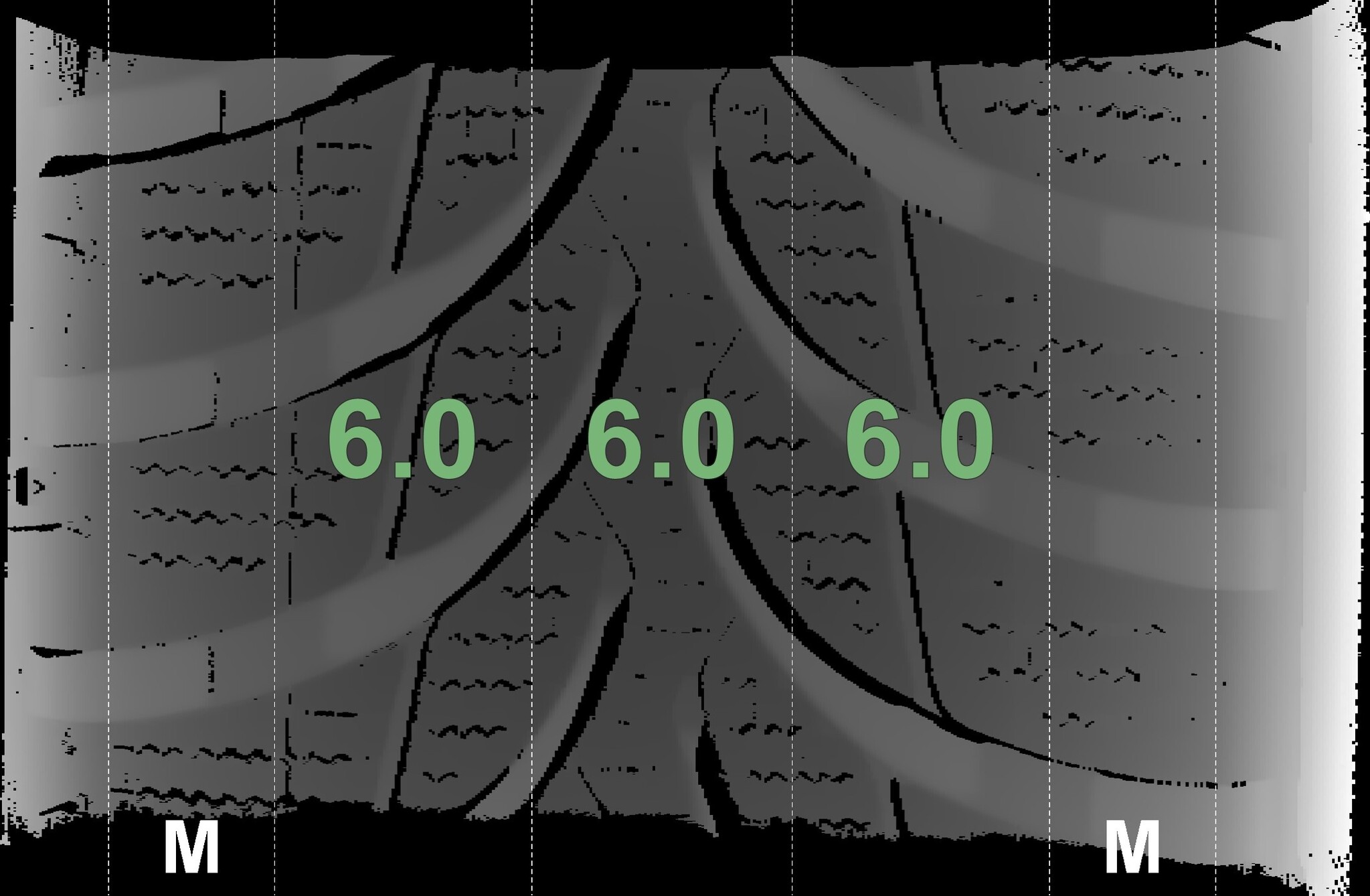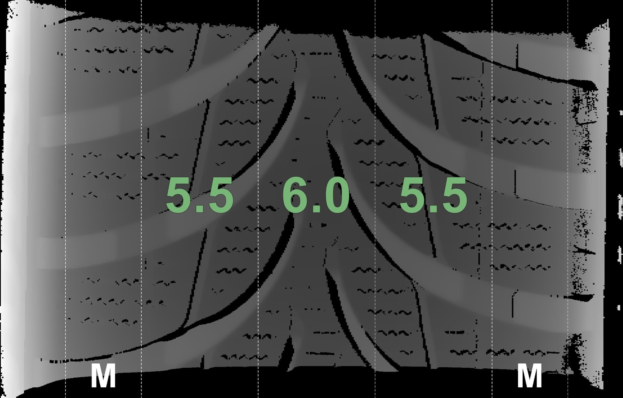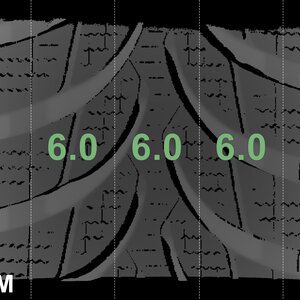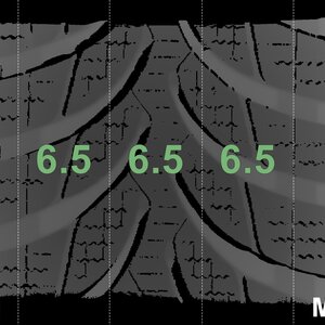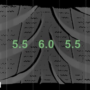 The measured tread depths and the details of the rims are shown above.