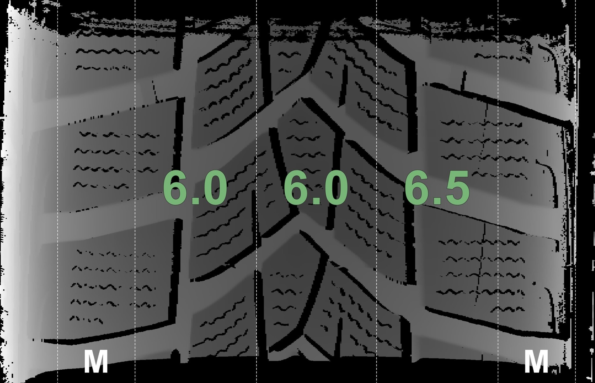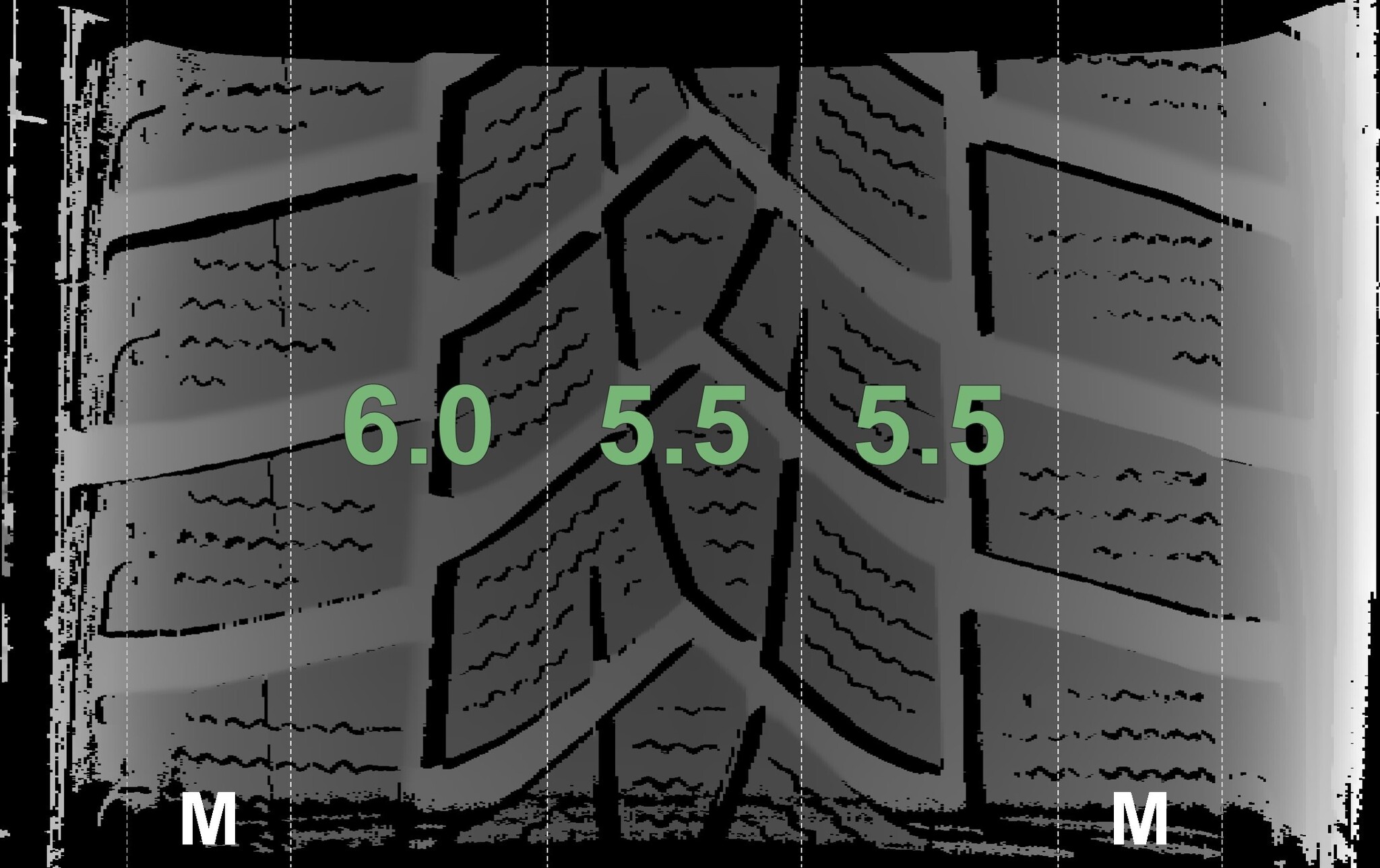 The measured tread depths and the details of the rims are shown above.