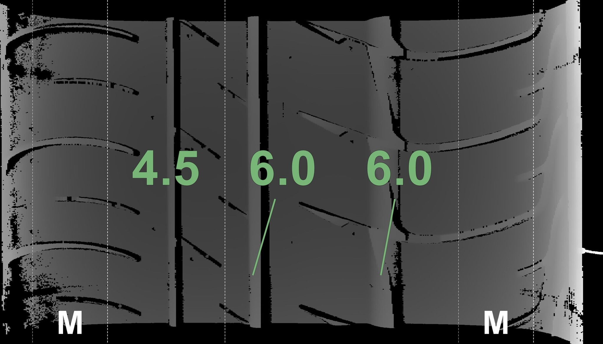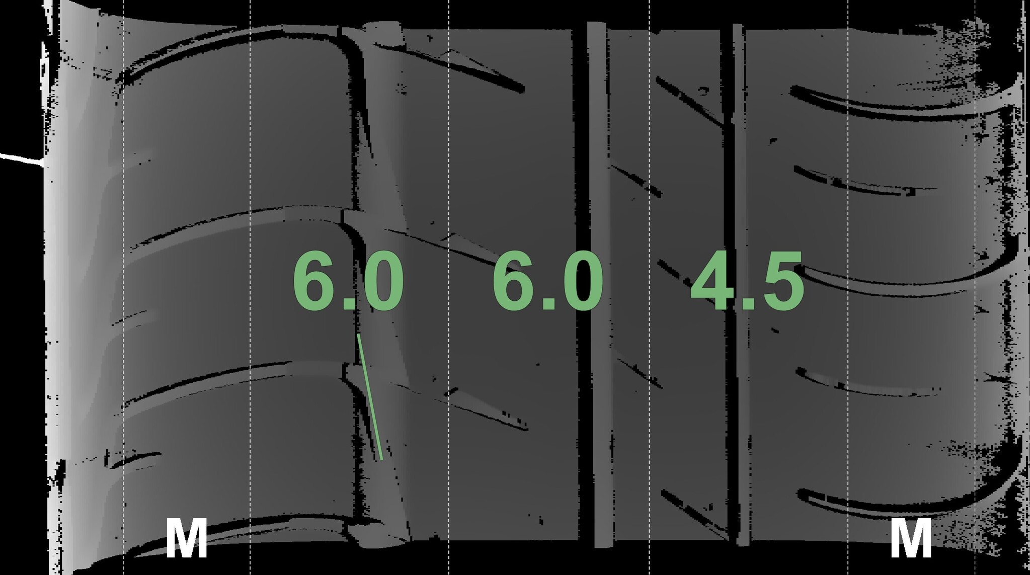 Condition | Profile depth | DOT | Rear Right | New | 6.0 mm | 0825 |