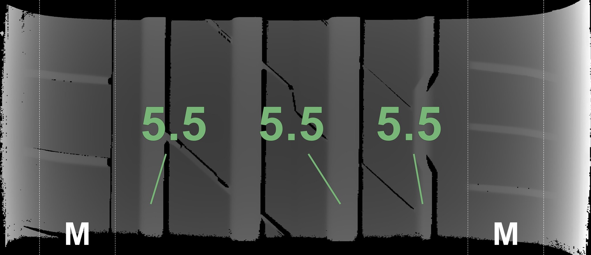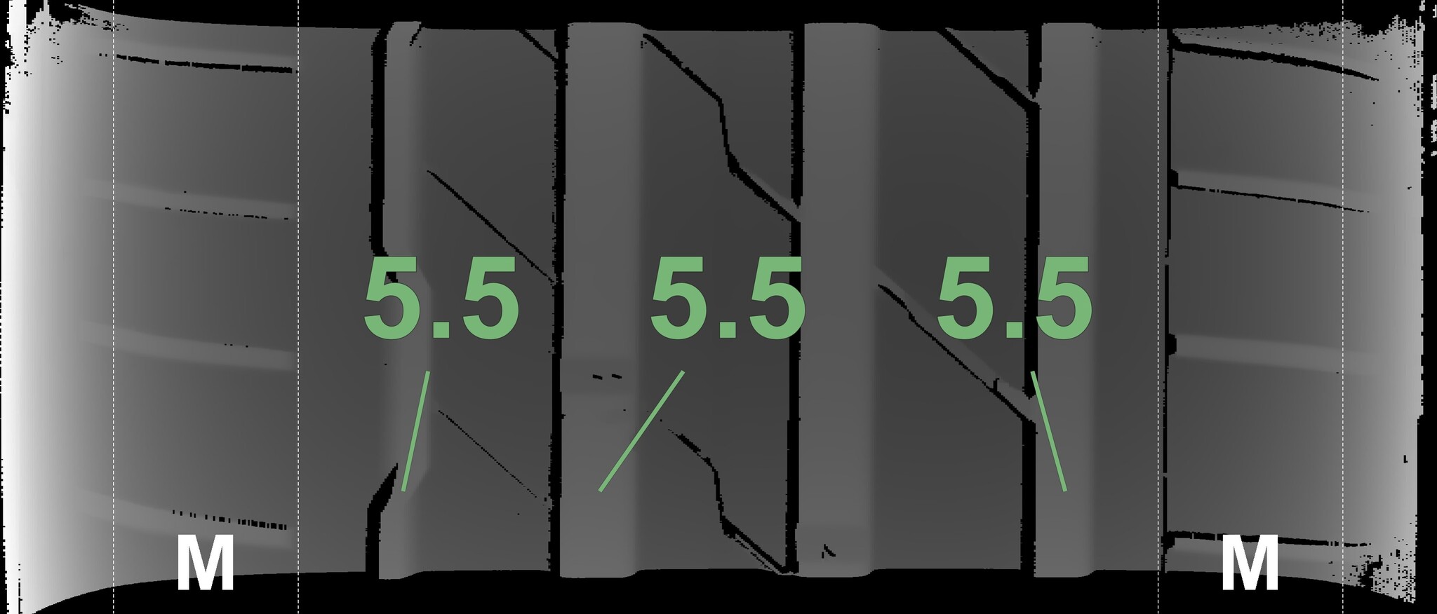 | Condition | Profile depth | DOT | Front Left | Used | 5.5 mm | 1222 |