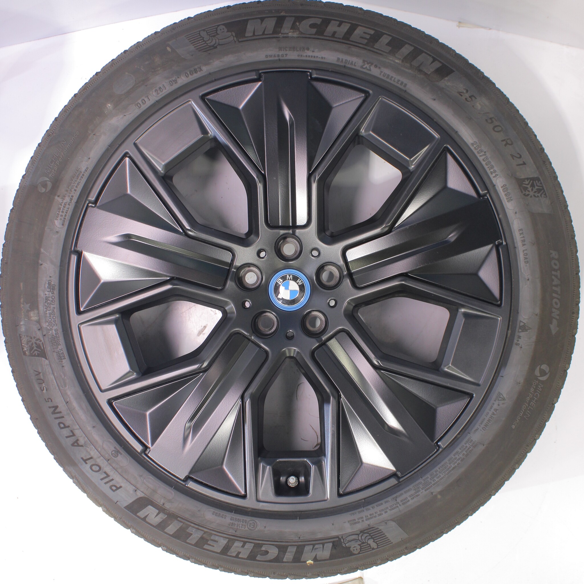 Original wheel set from BMW, styling 1011 21 inch rims with Michelin Pilotalpin 5 Winter tires. These rims are original rims of the brand BMW and suitable for: BMW iX i20.
