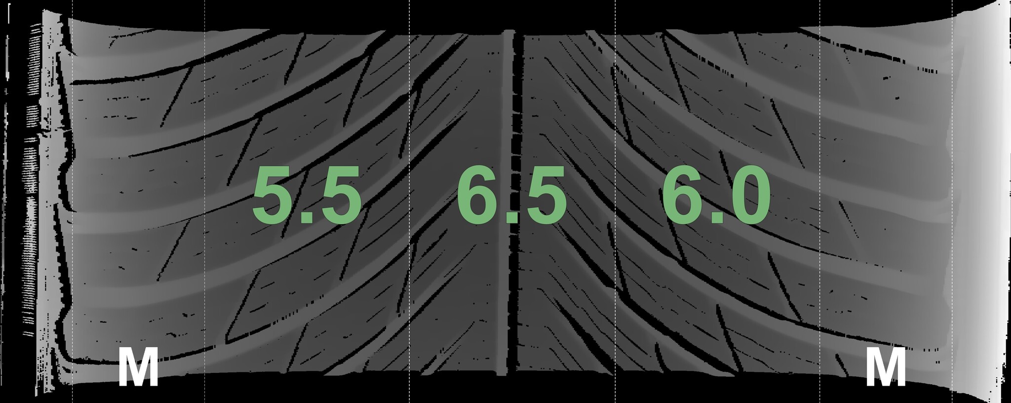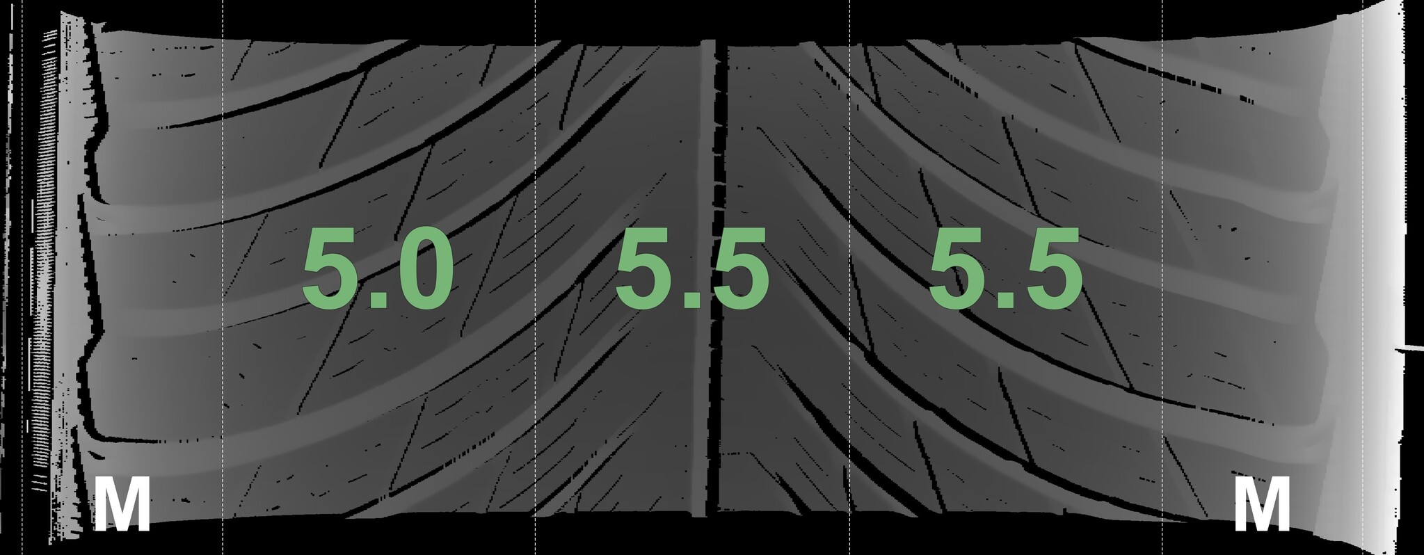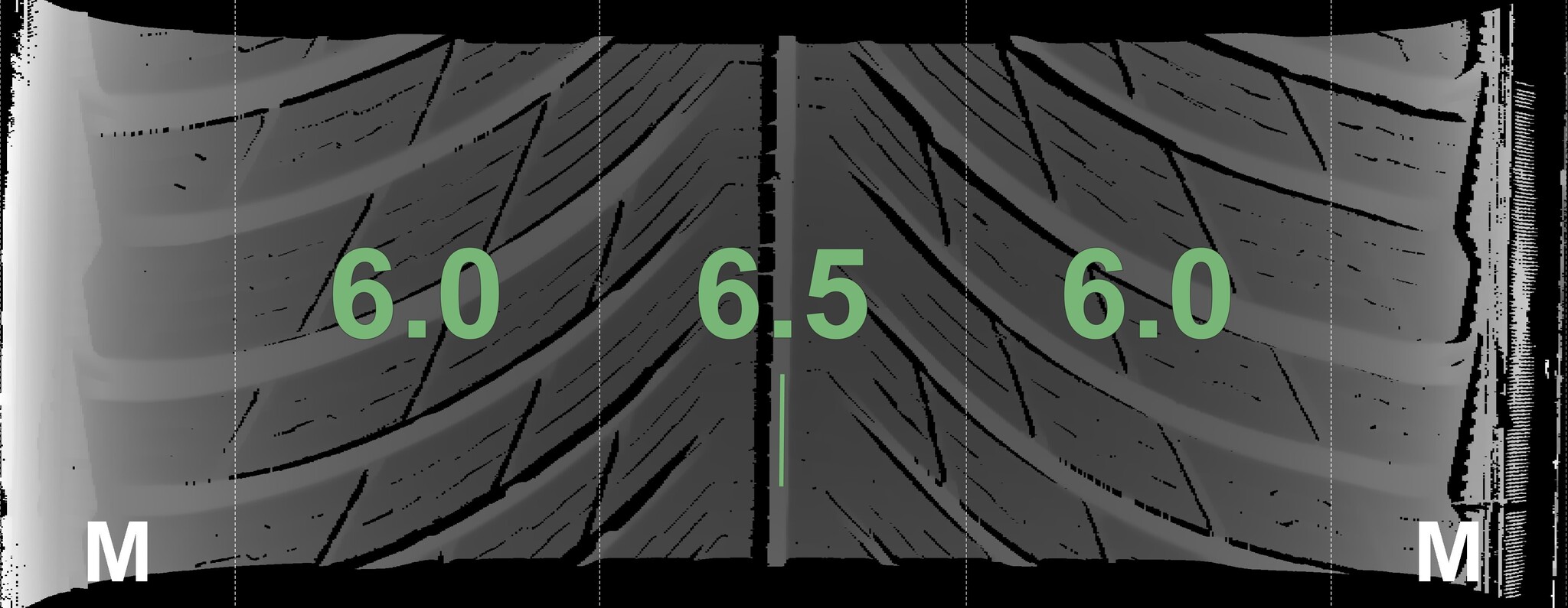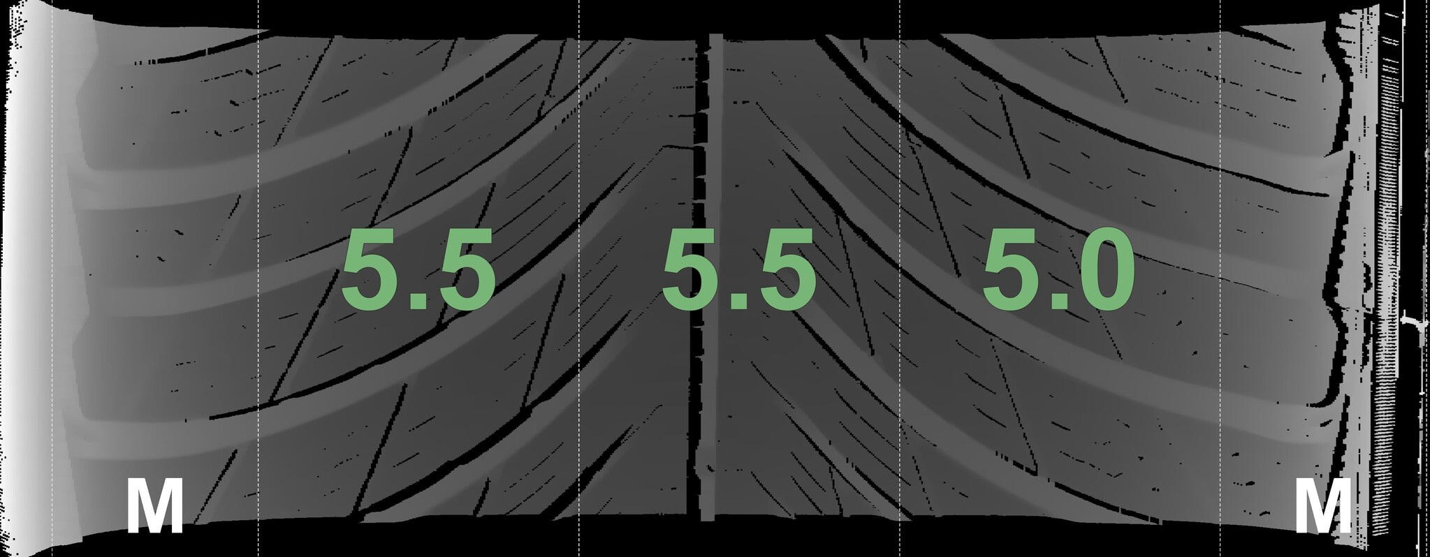 The measured tread depths and details of the rims are shown above.