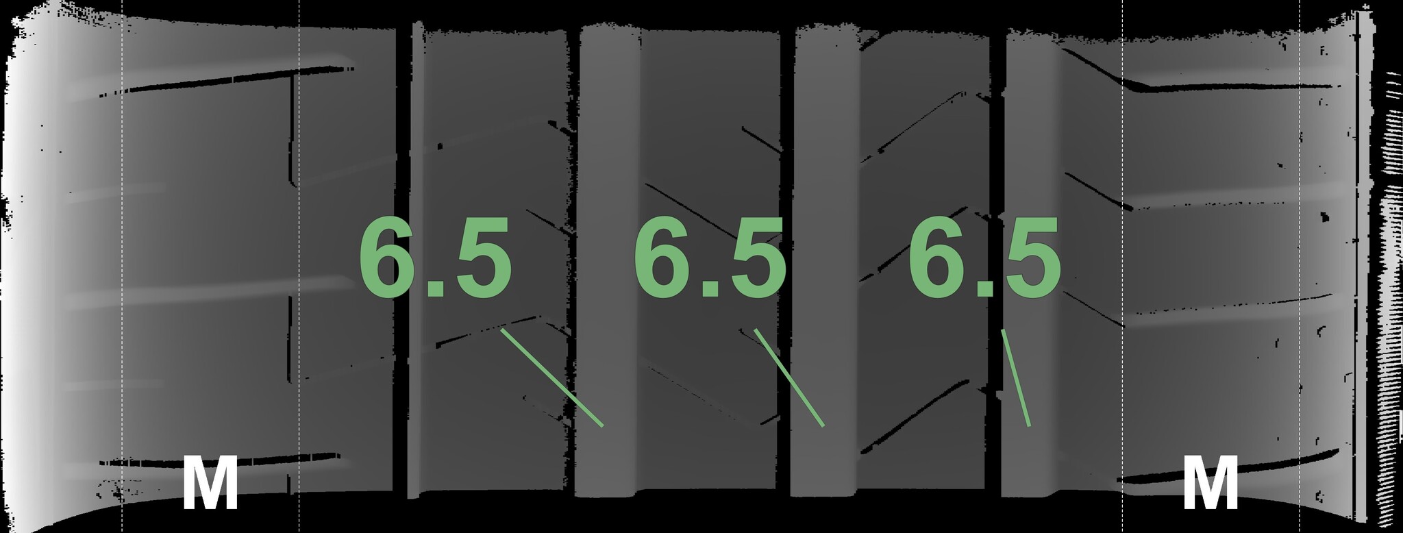 | Condition | Profile depth | DOT | Rear Left | Demo nubs still visible | 6.5 mm | 0424 |