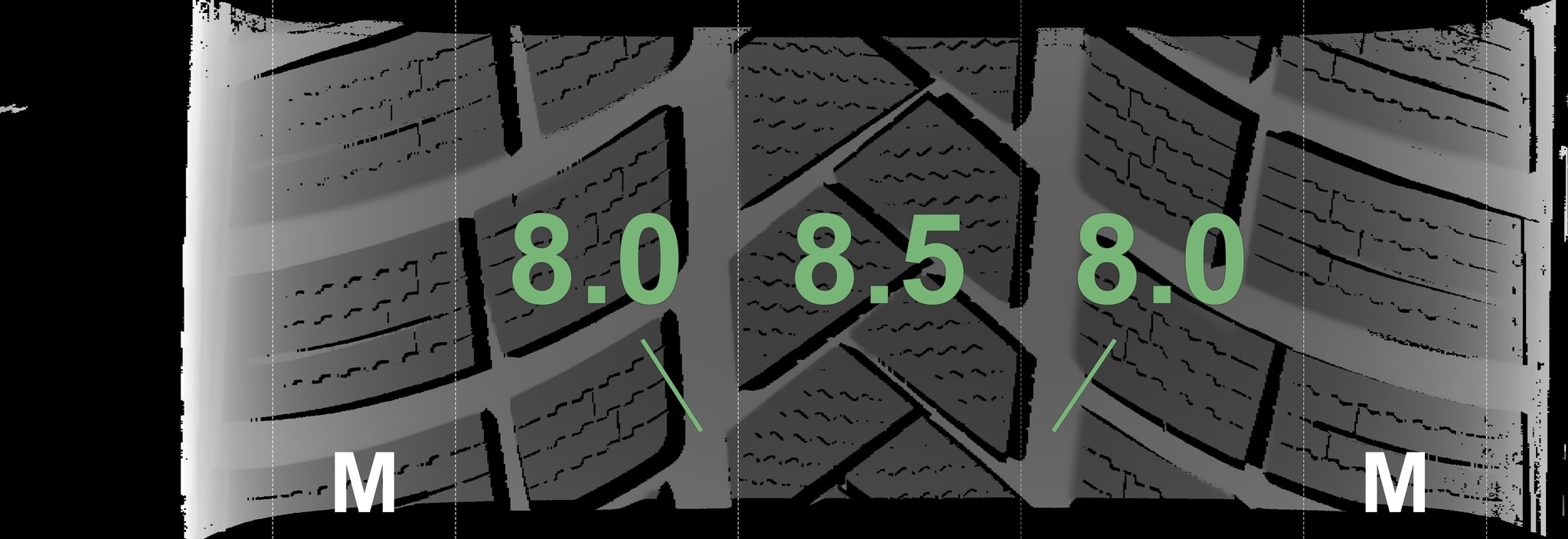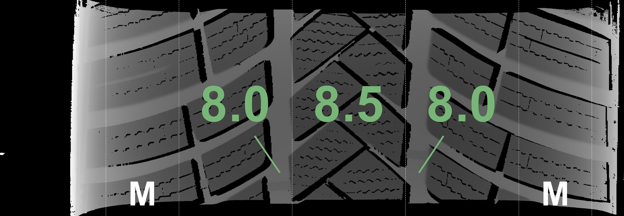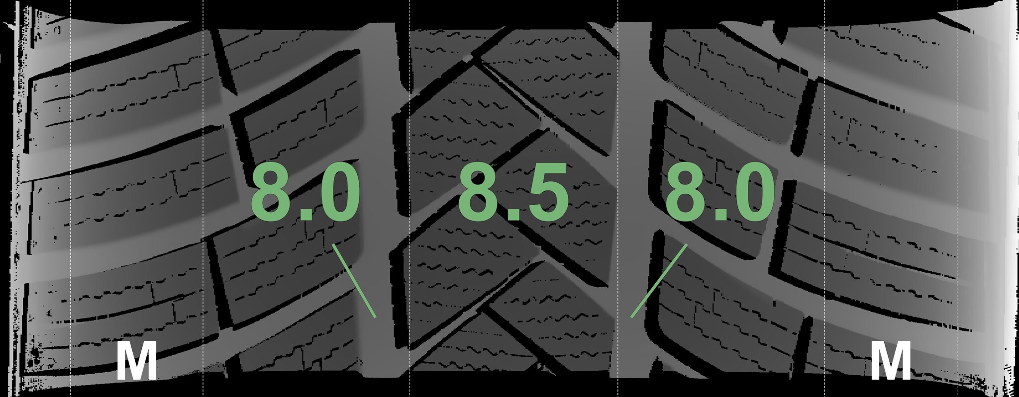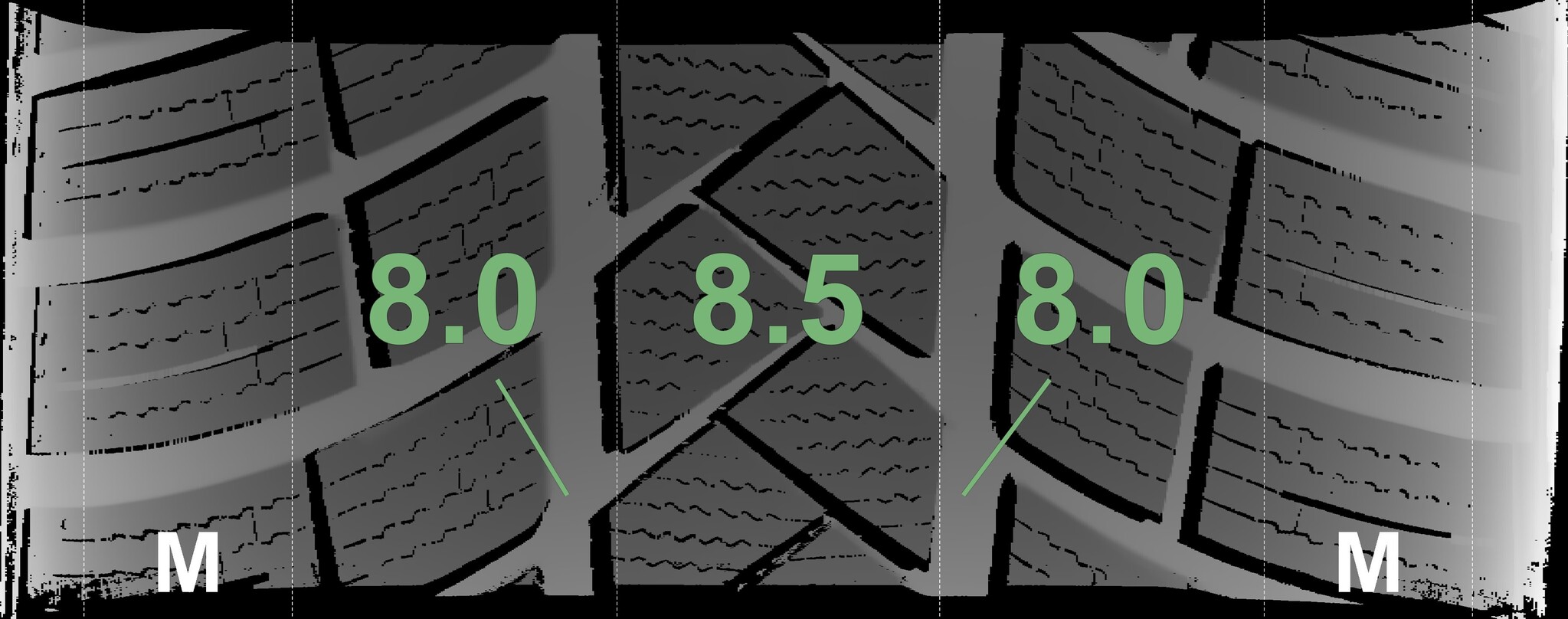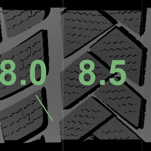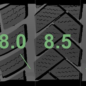 The measured tread depths and the details of the rims are shown above.