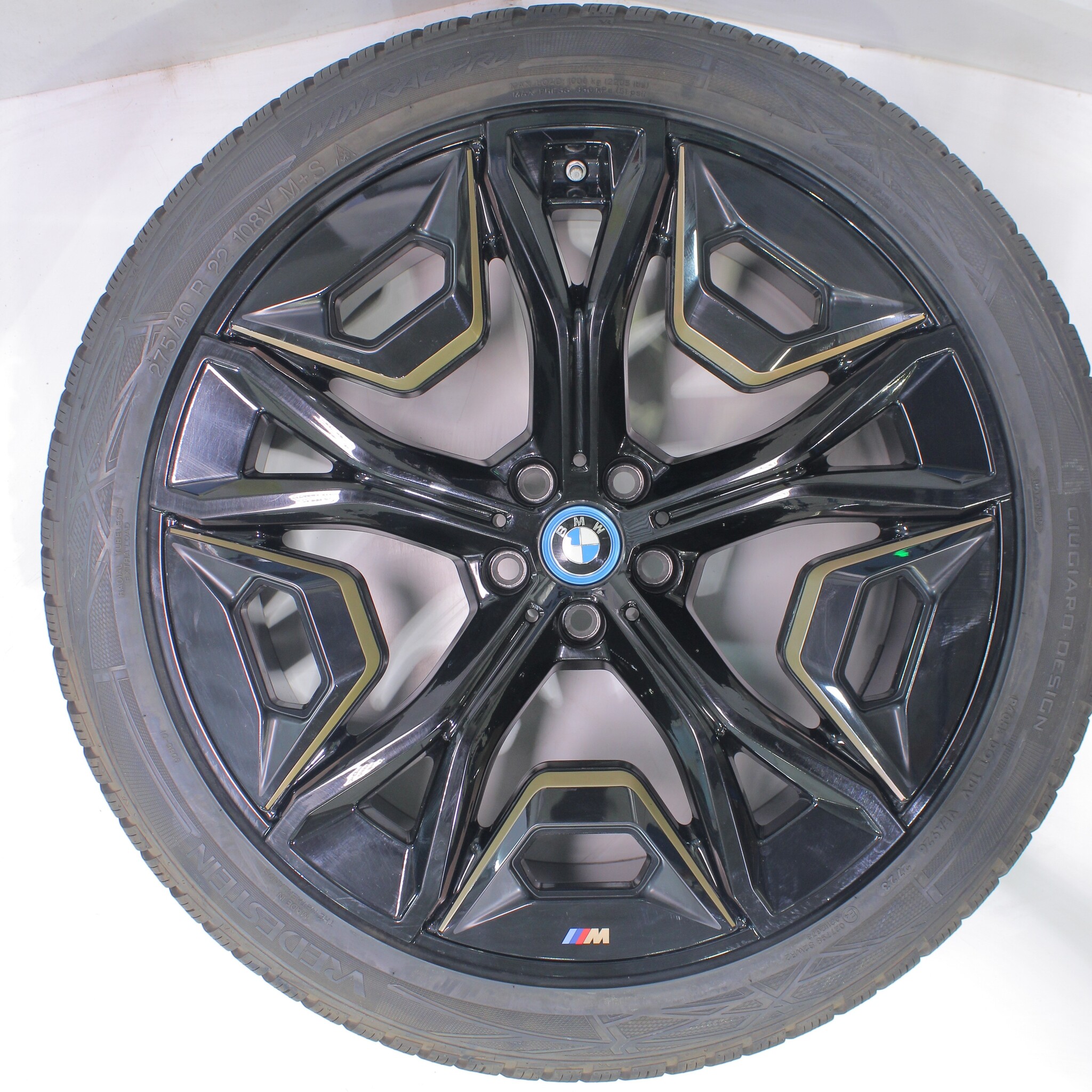 Original BMW wheel set, styling 1020, 22-inch rims with Vredestein Wintrac Pro Winter Tires. These rims are original BMW brand rims and suitable for: BMW iX i20.