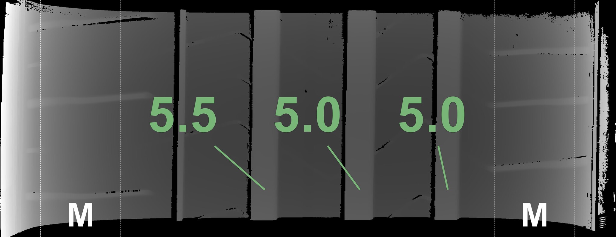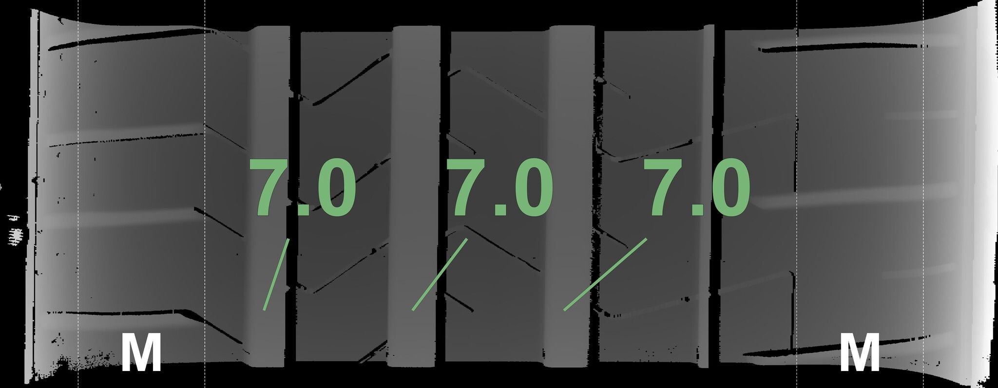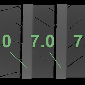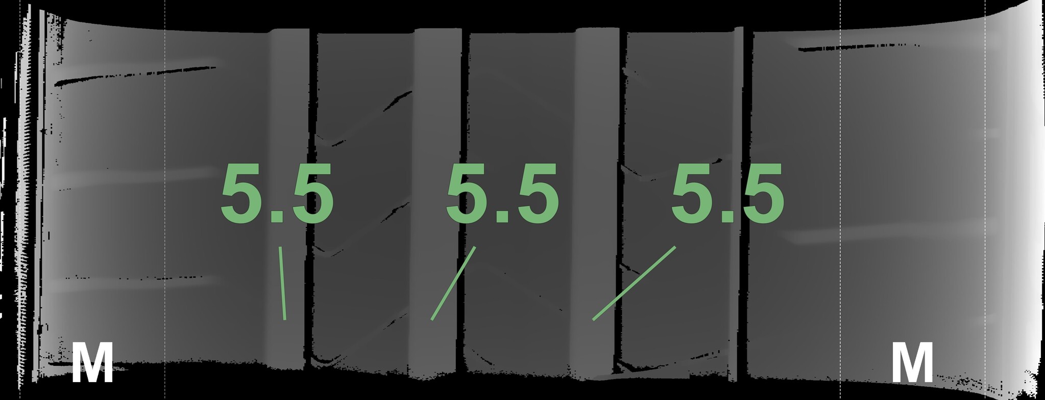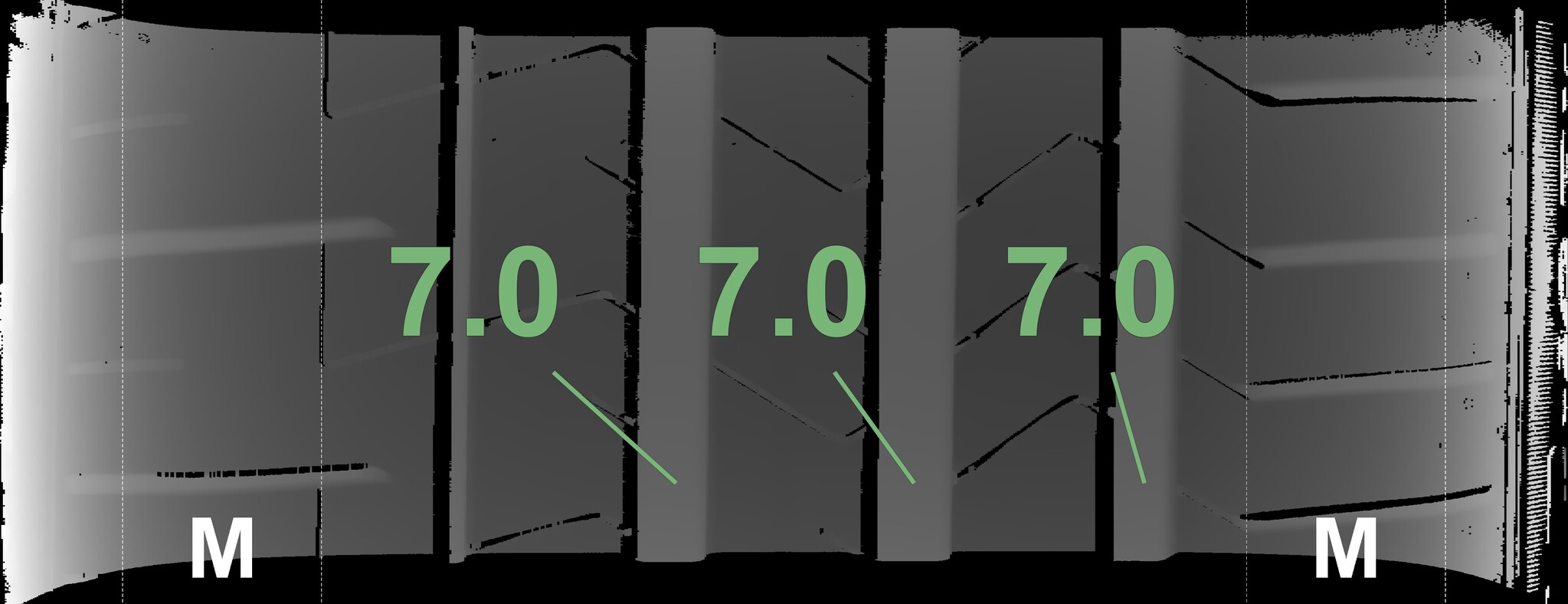 The measured tread depths and the details of the rims are shown above.