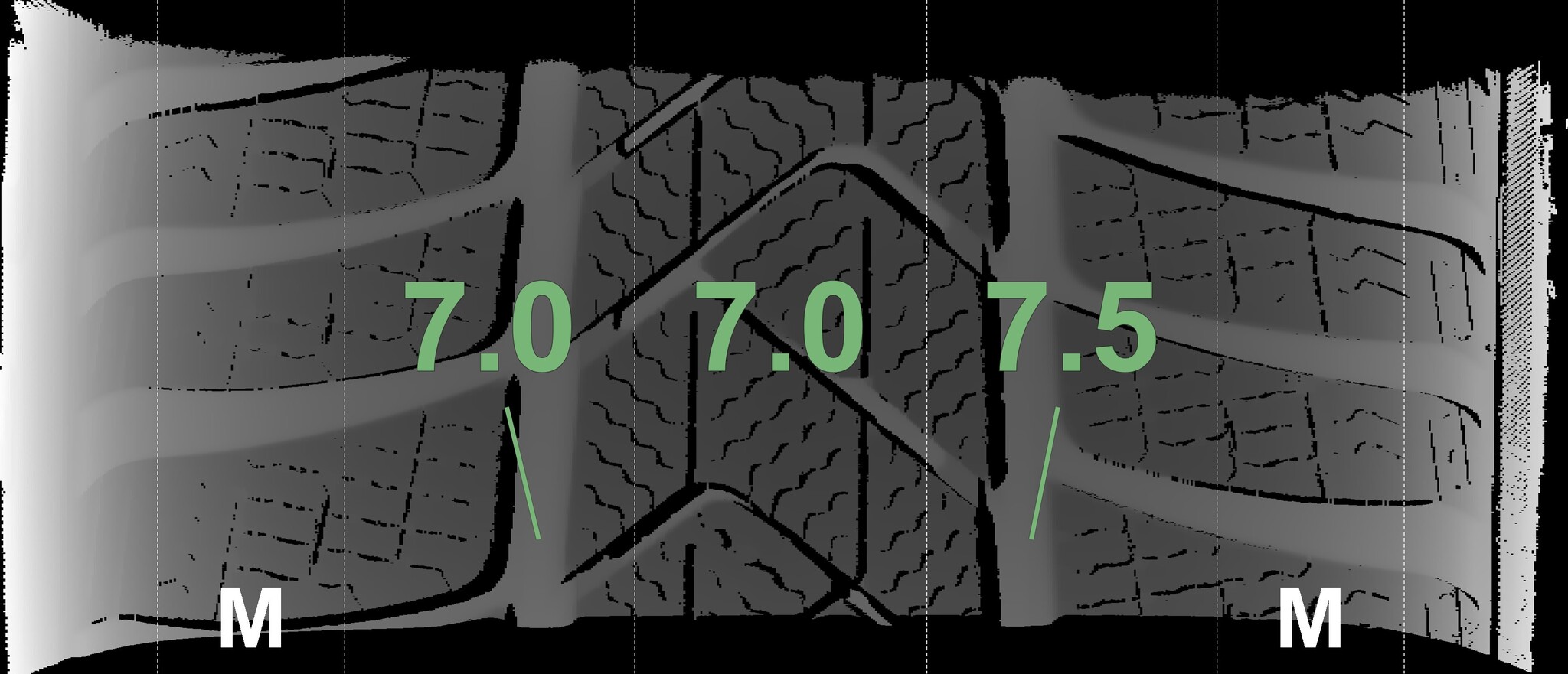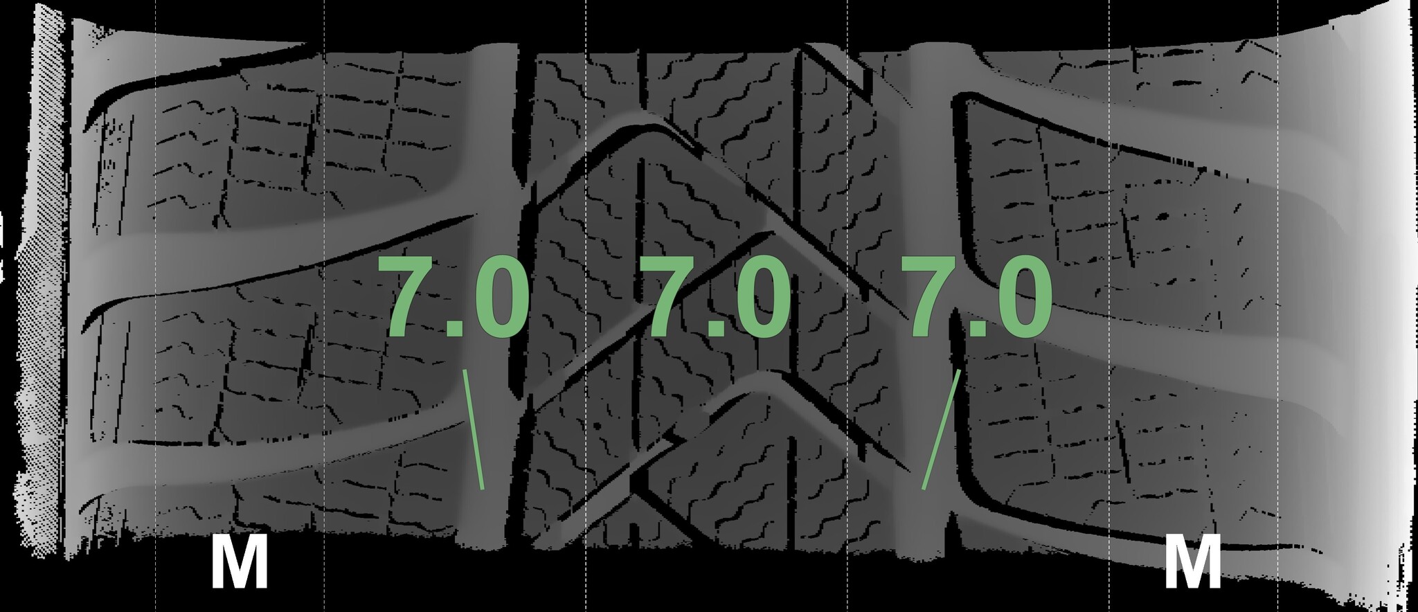 | Condition | Profile depth | DOT | Front Right | Used | 6.7 mm | 1621 |