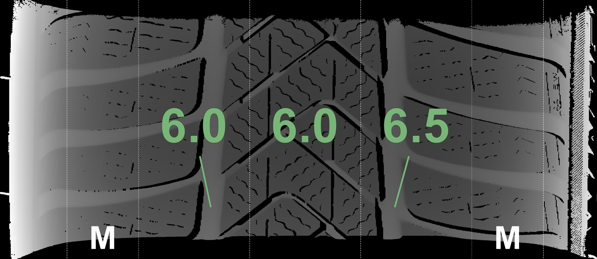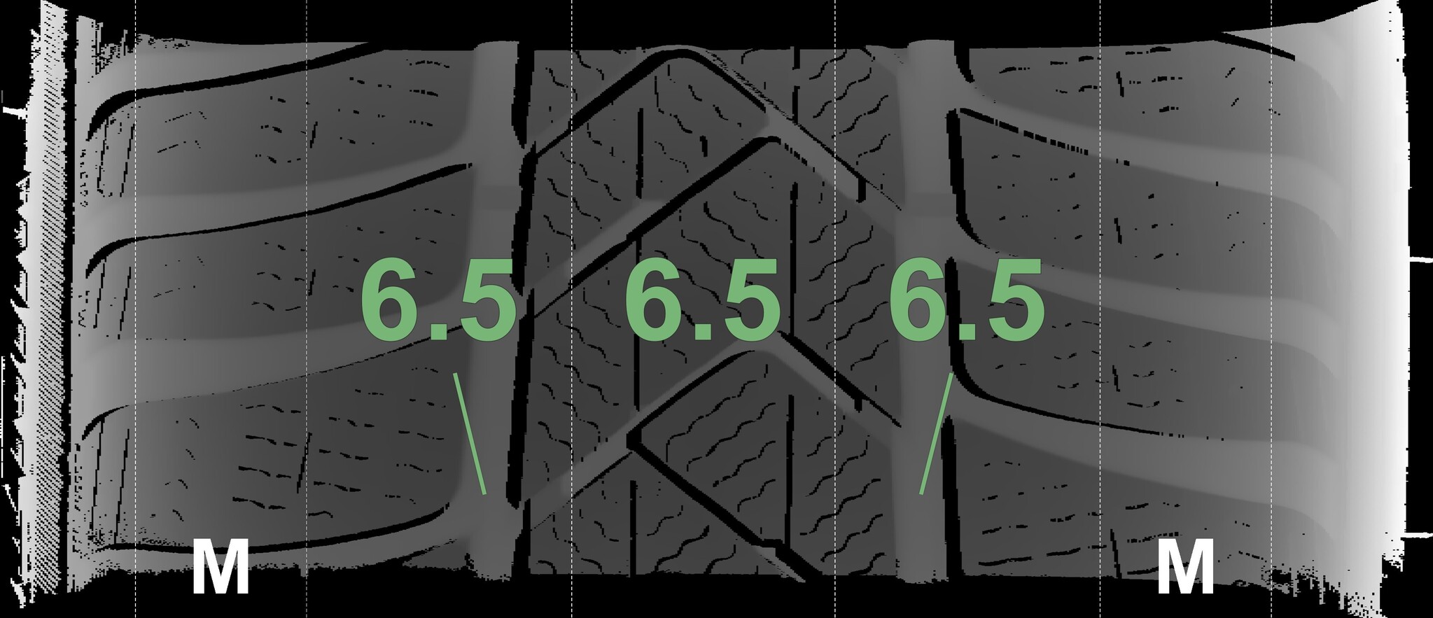 | Condition | Profile depth | DOT | Front Right | Used | 6.5 mm | 1621 |