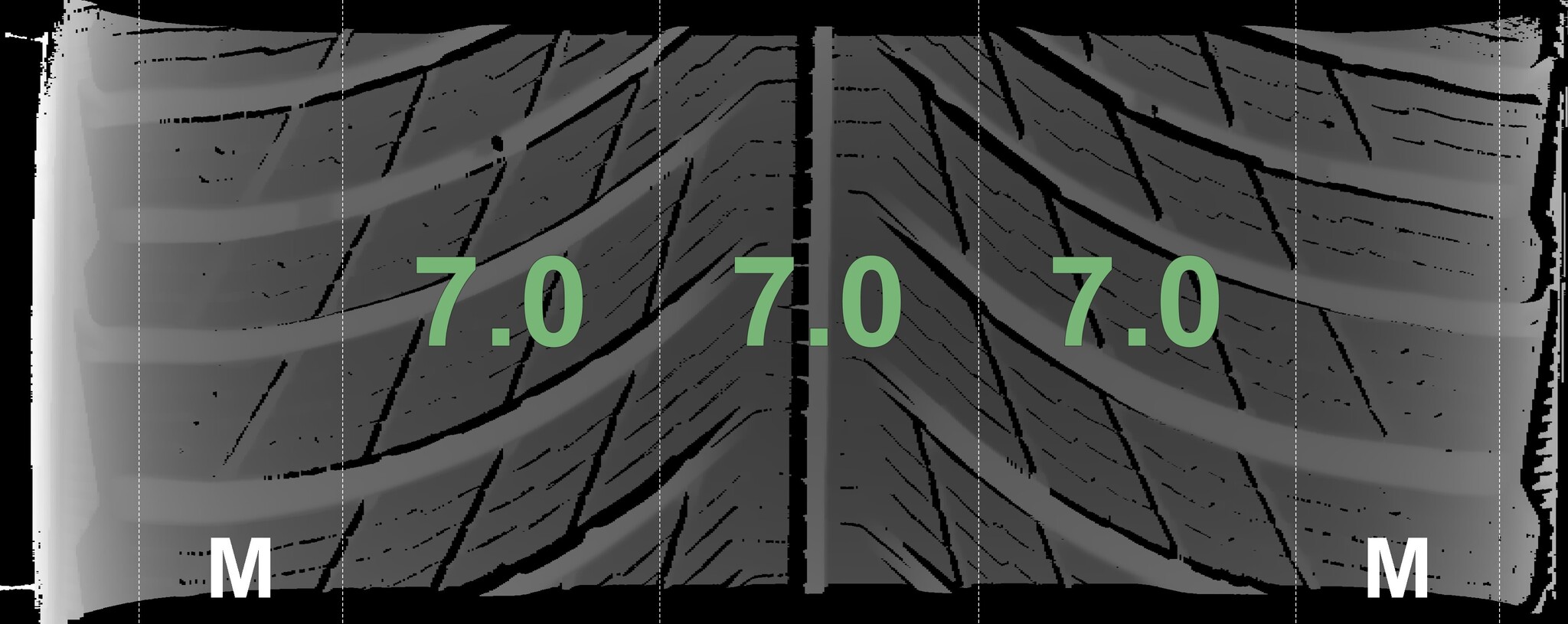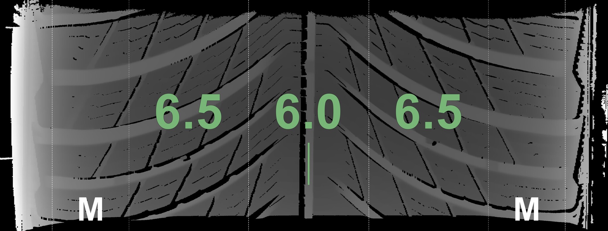 The measured tread depths and details of the rims are shown above.