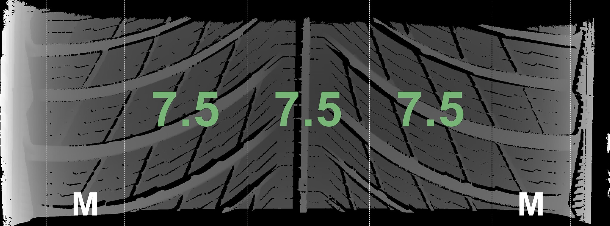 | Condition | Profile depth | DOT | Front Right | New | 7.5 mm | 4225 |
