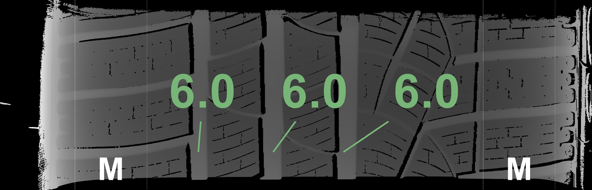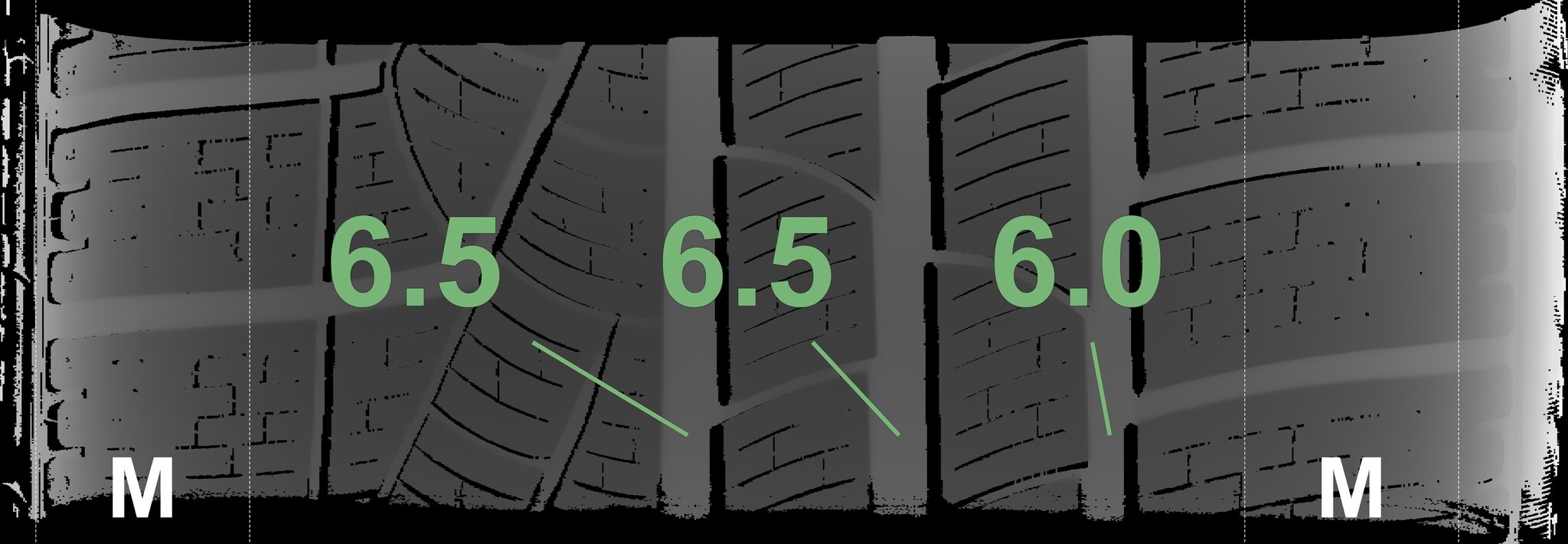 The measured tread depths and the details of the rims are shown above.