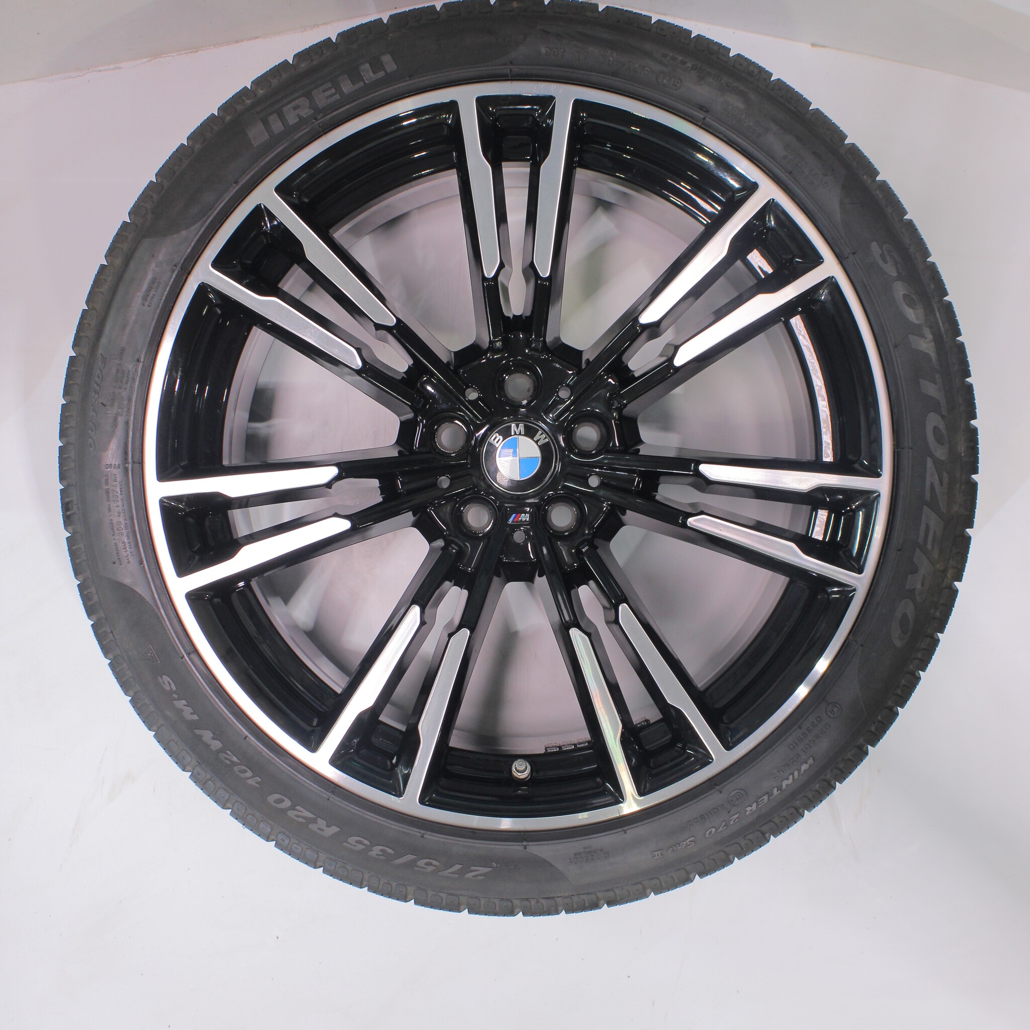 Original BMW wheelset, styling 706M, 20-inch rims with Pirelli Sottozero Winter 270 winter tires. These rims are original BMW brand rims and suitable for: BMW M5 F90 M8 F90 F91 F92.