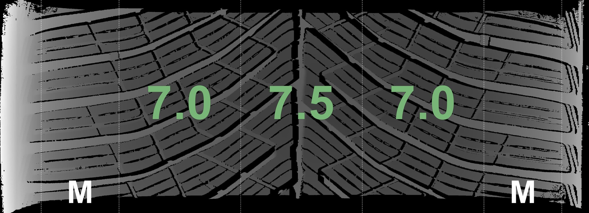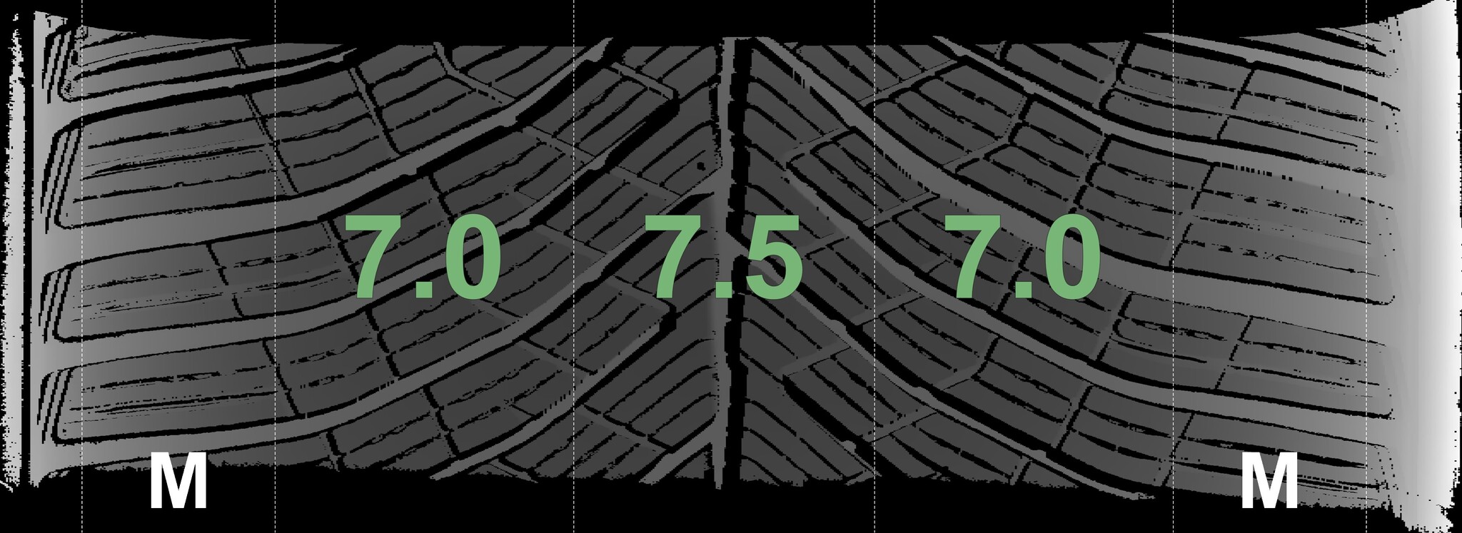 The measured tread depths and the details of the rims are shown above.