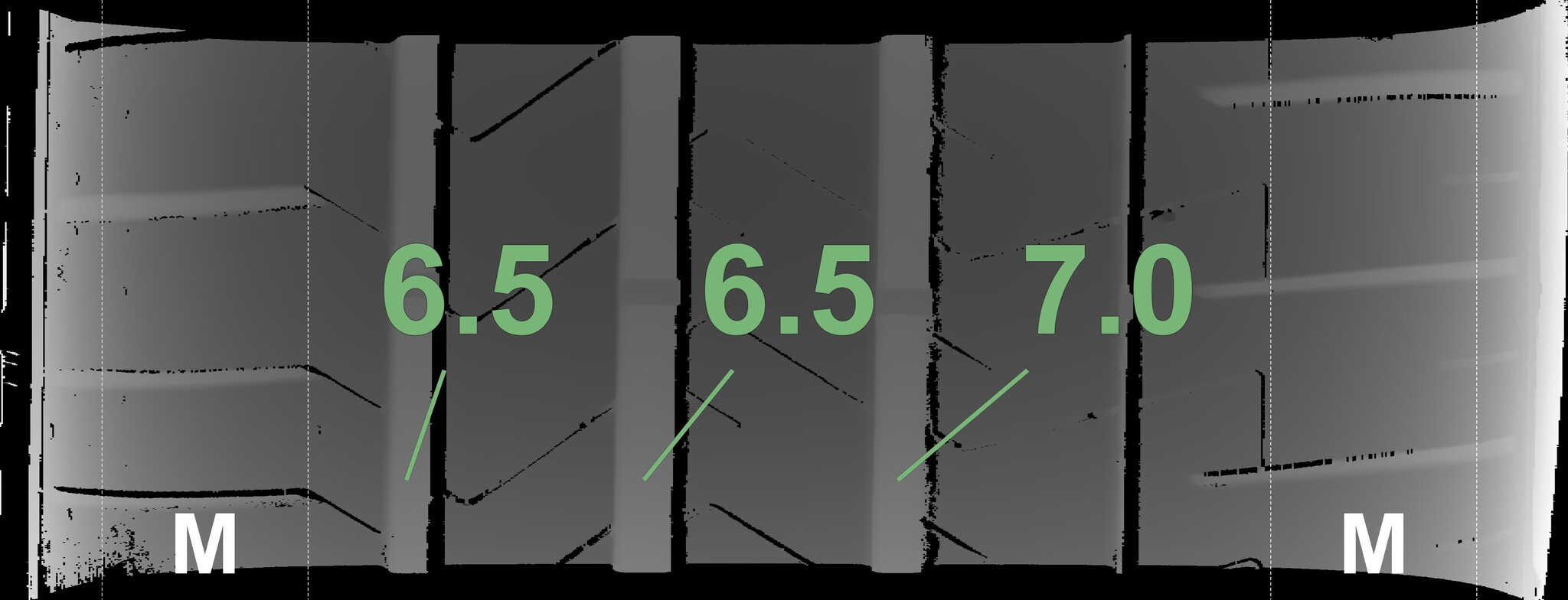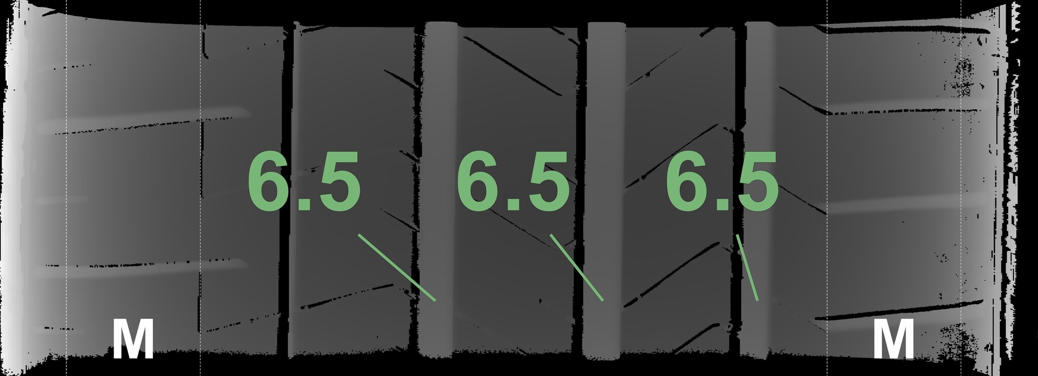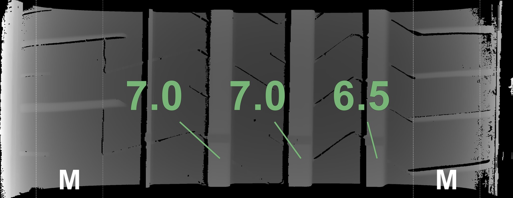 The measured tread depths and the details of the wheels are shown above.