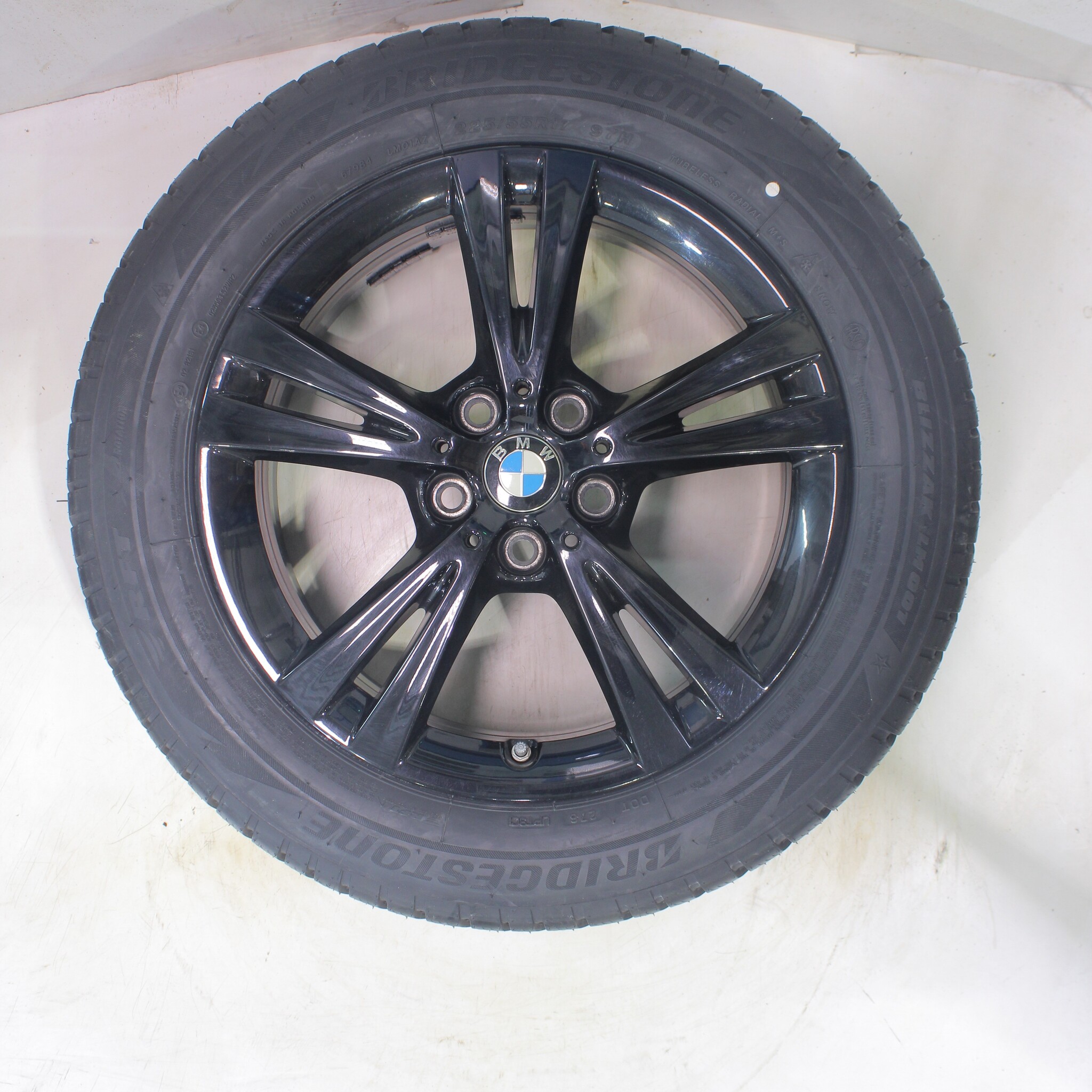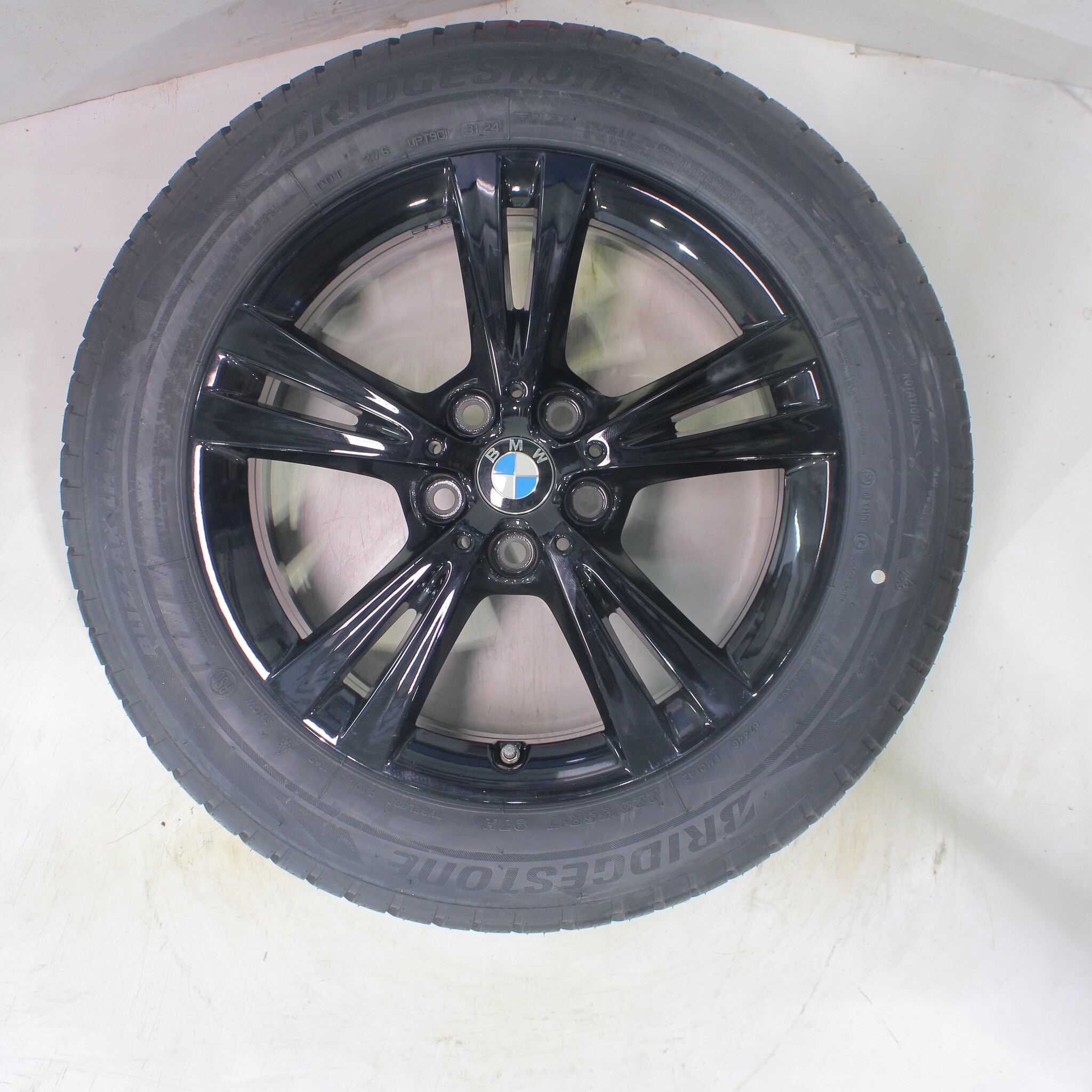 Original BMW wheelset, styling 385, 17-inch rims with Bridgestone BLIZZAK LM001 Runflat Winter Tires. These rims are original BMW brand rims and suitable for: BMW X1 F48 X2 F39.