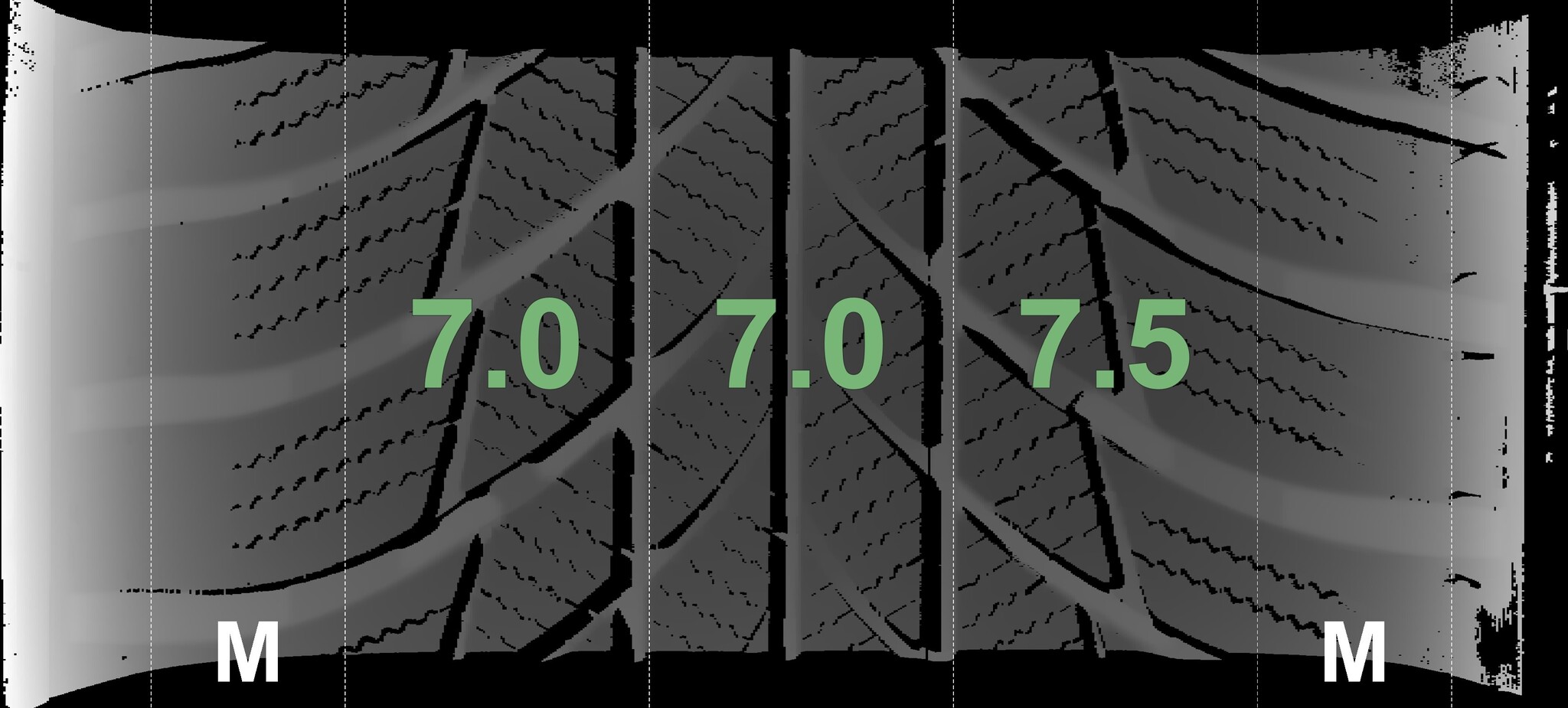 Condition | Profile depth | DOT | Rear Left | Used | 7.0 mm | 4718 |