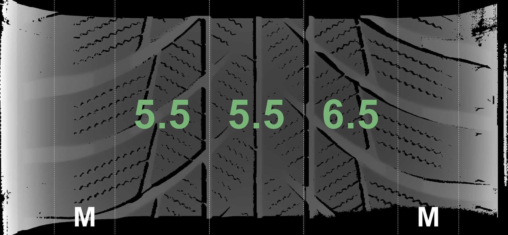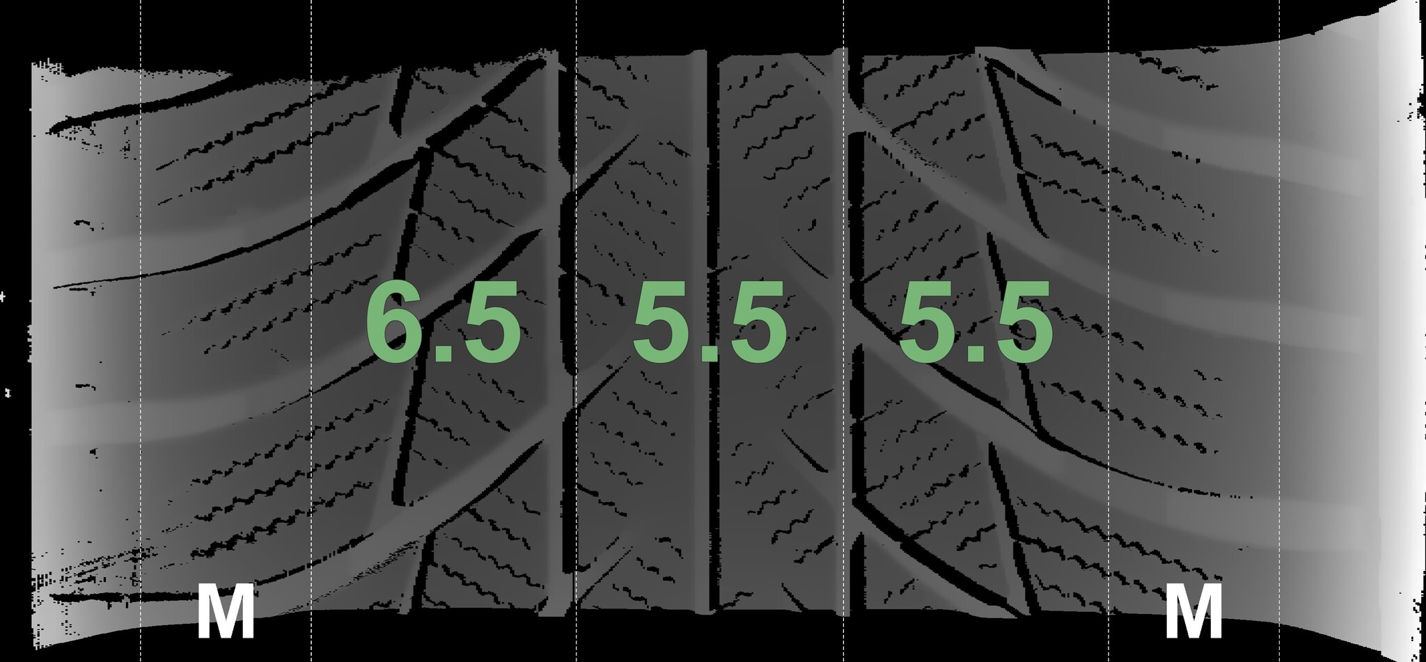 Condition | Profile depth | DOT | Front Left | Used | 5.5 mm | 2818 |