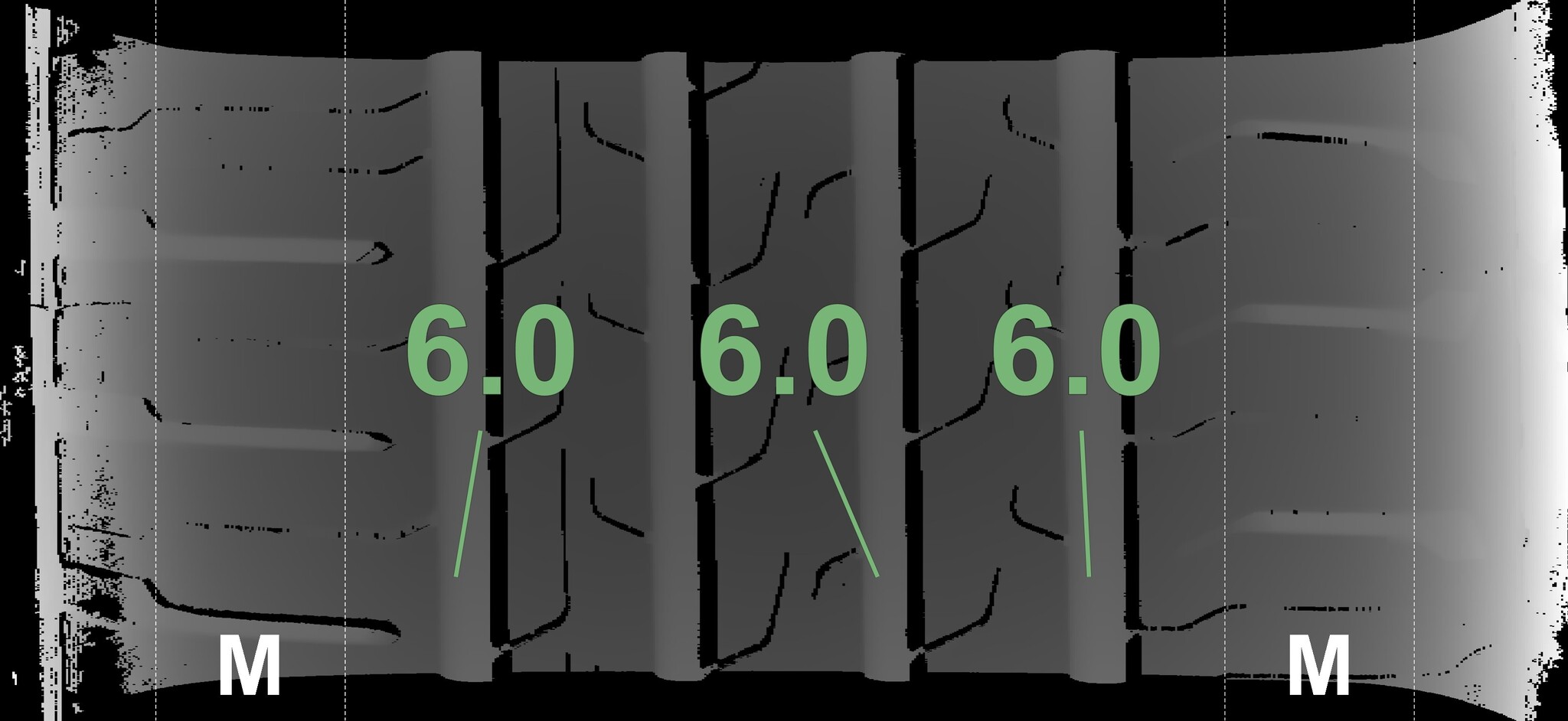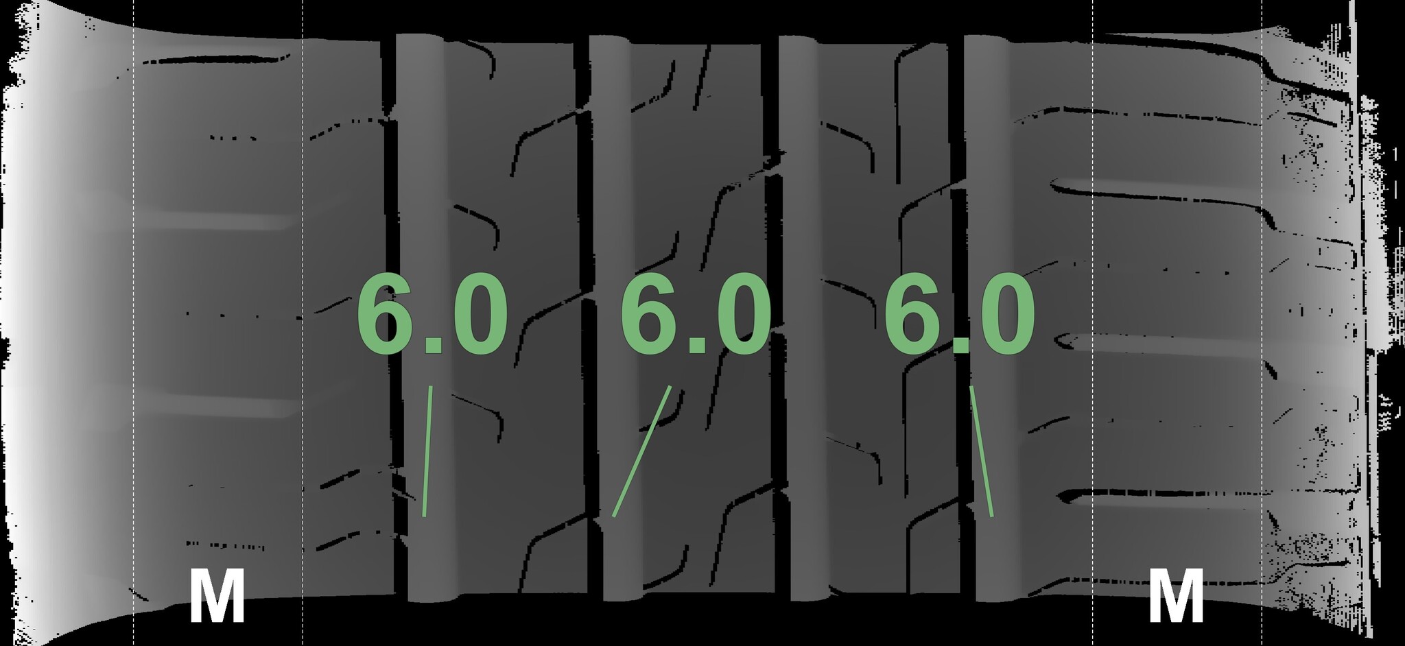 Condition | Profile depth | DOT | Front Left | Demo studs still visible | 6.0 mm | 2223 |