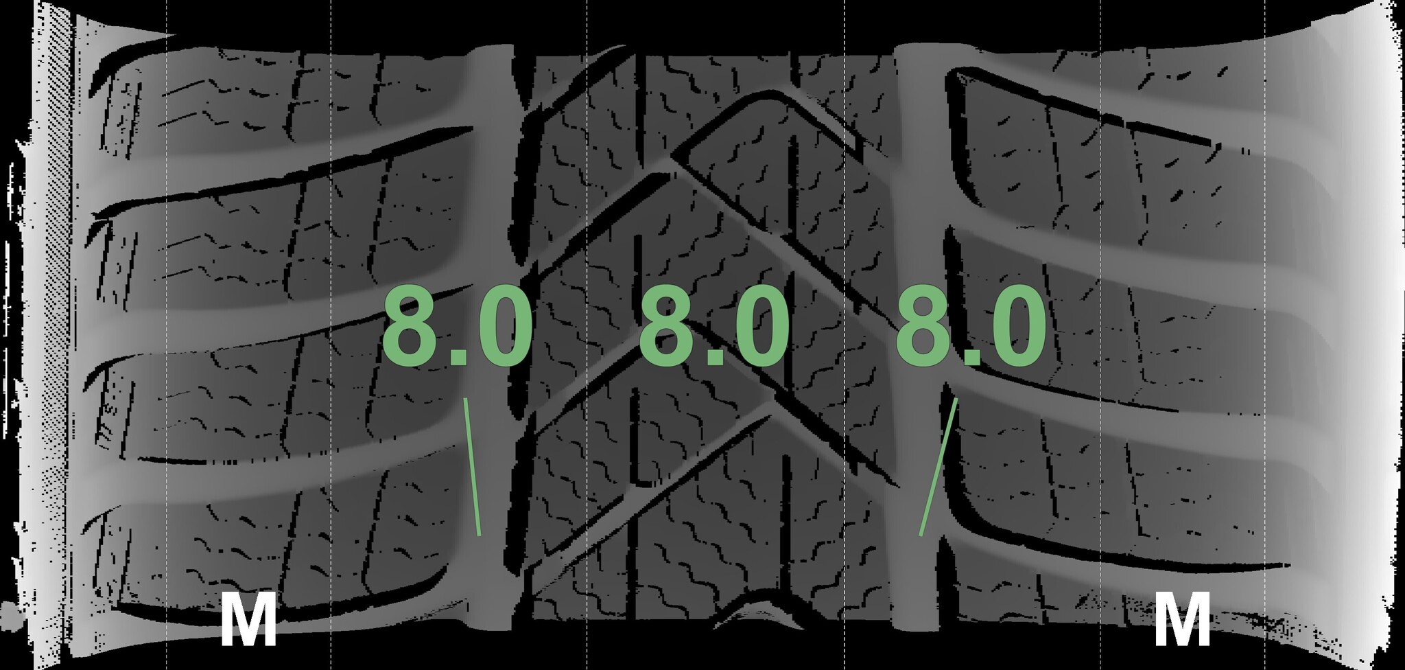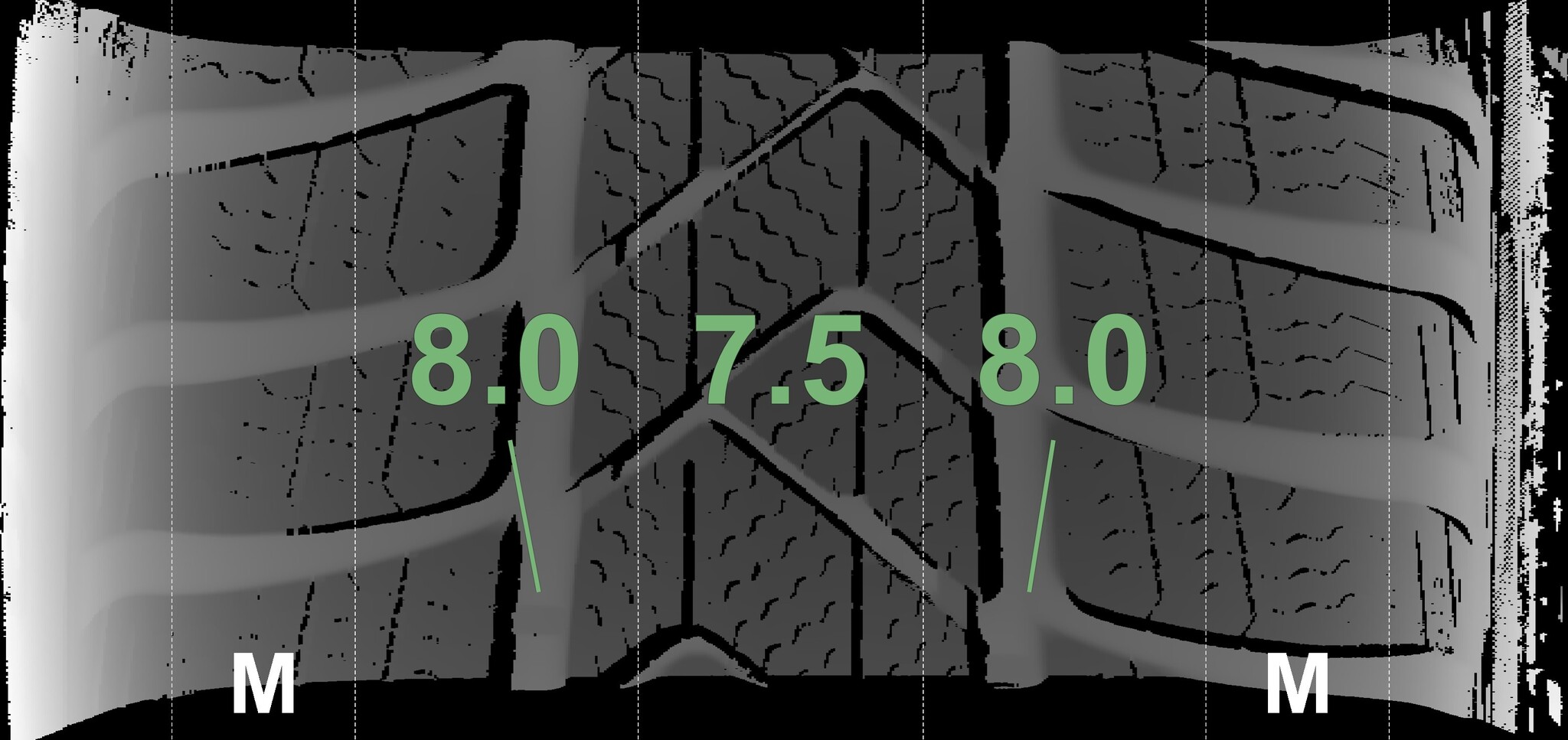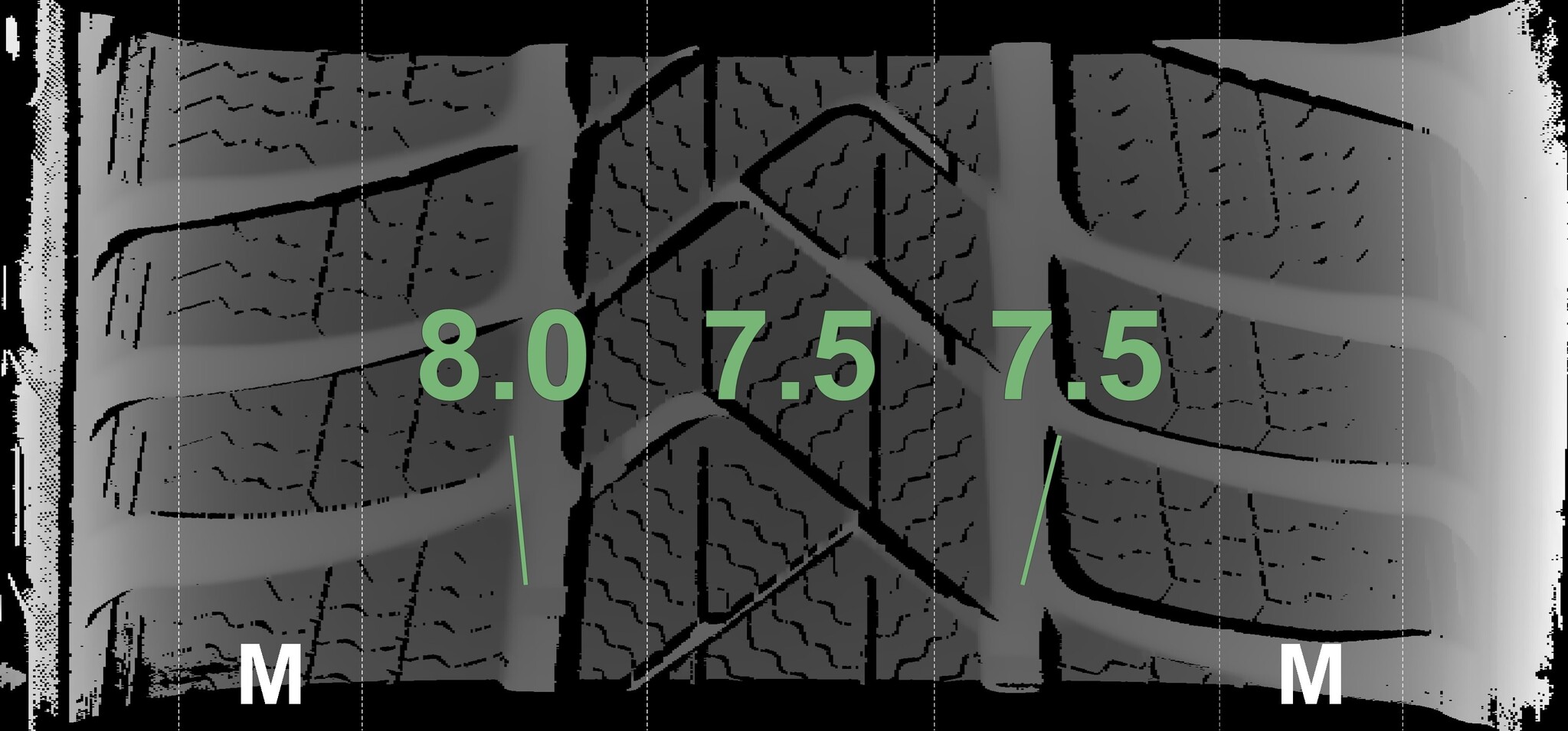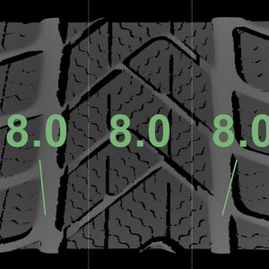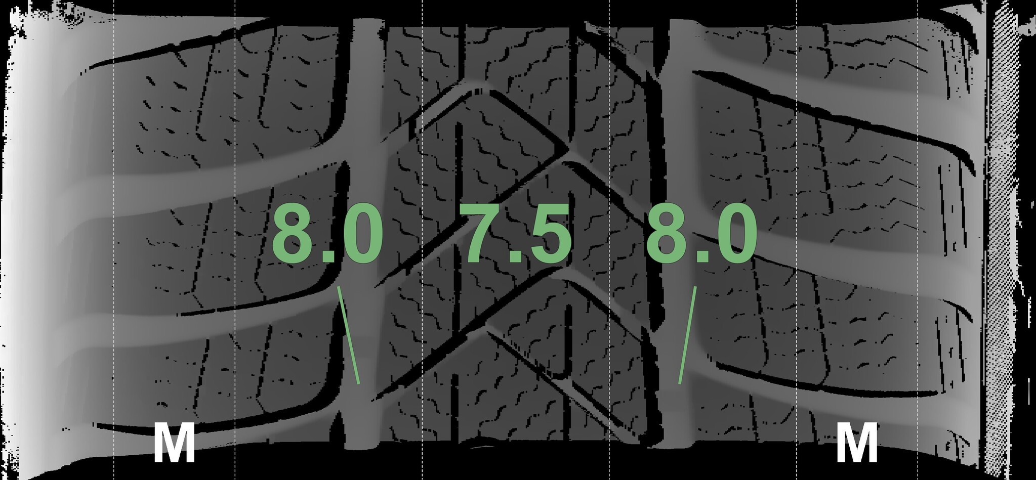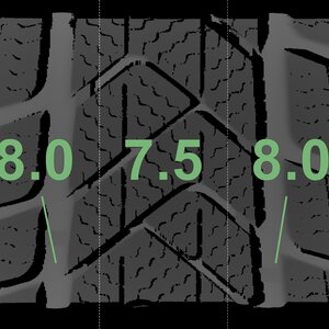 The measured tread depths and the details of the wheels are shown above.