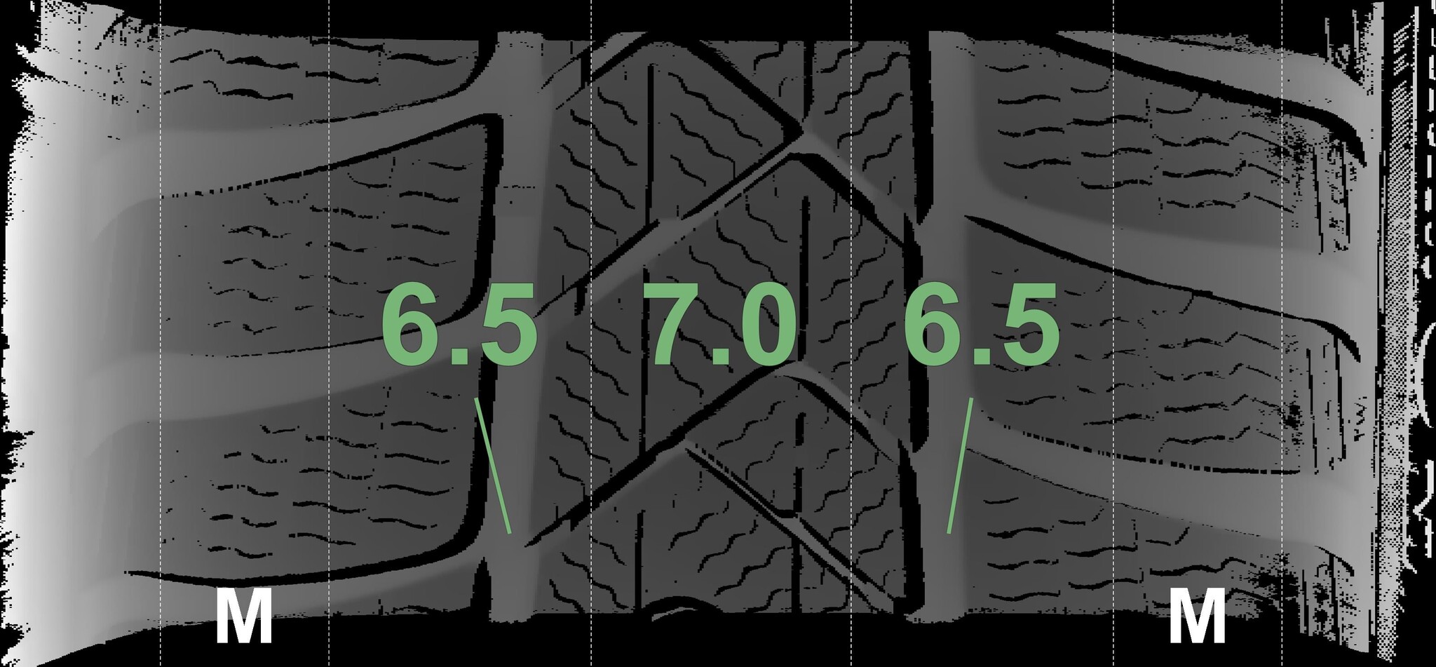 Winter tires mounted on this wheel set are equipped with the snowflake symbol mandatory in Germany and Austria and also have the M+S marking.