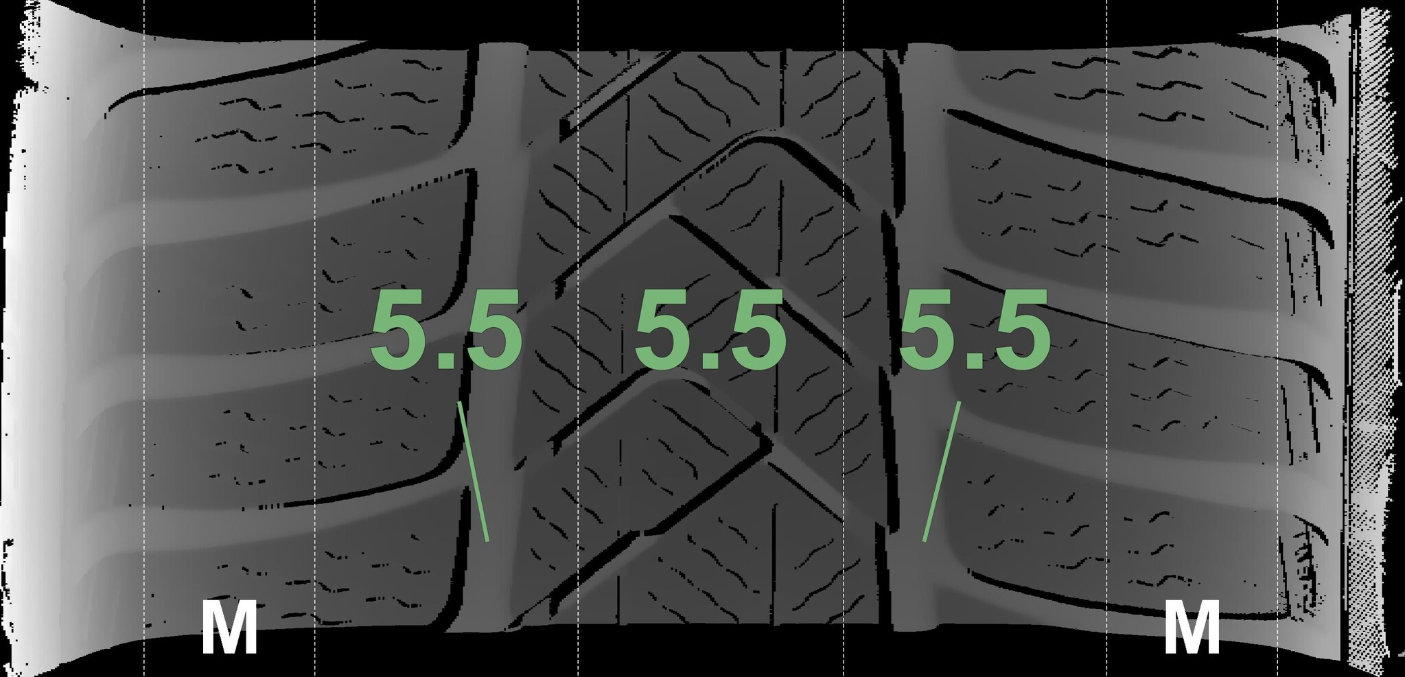 | Condition | Profile depth | DOT | Front Left | Used | 5.5 mm | 4317 |