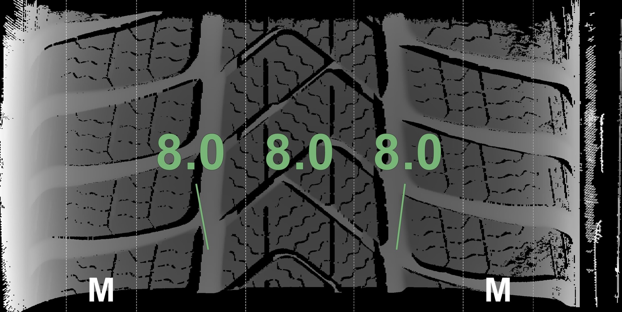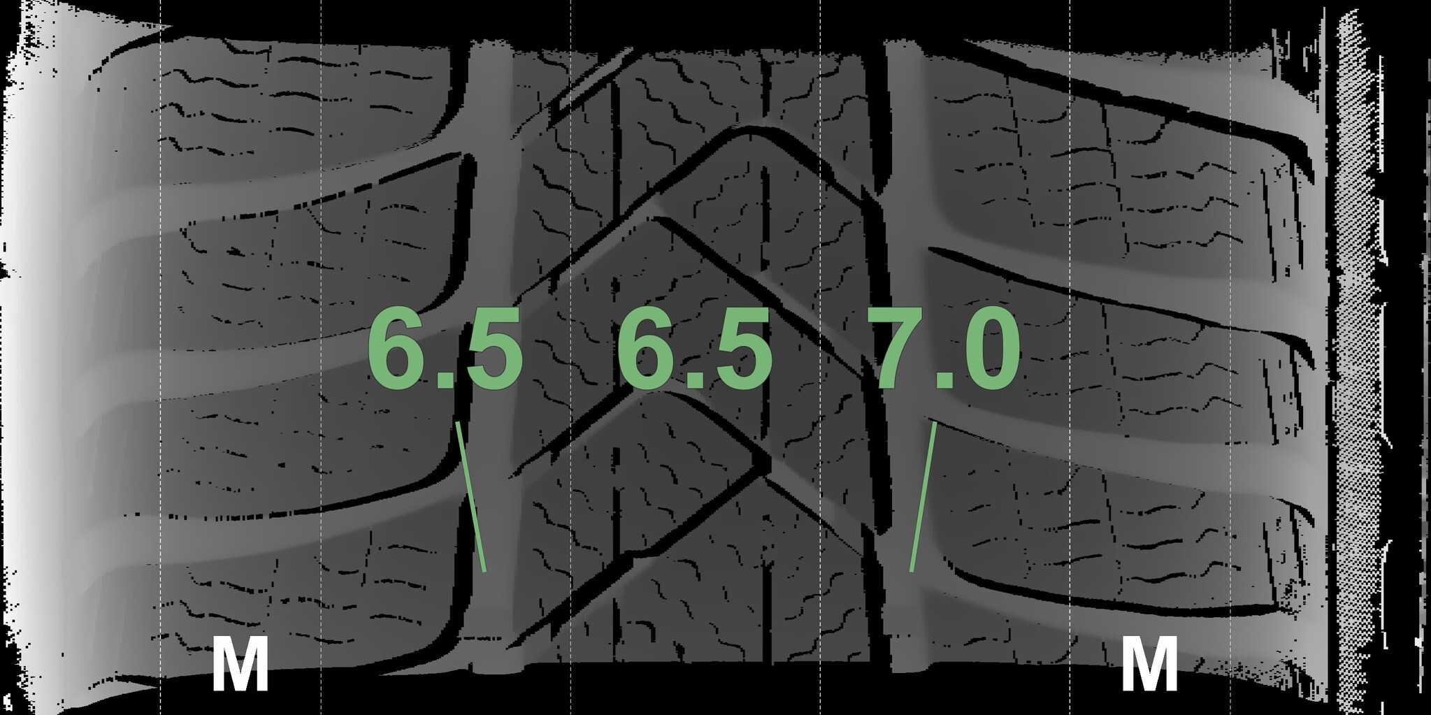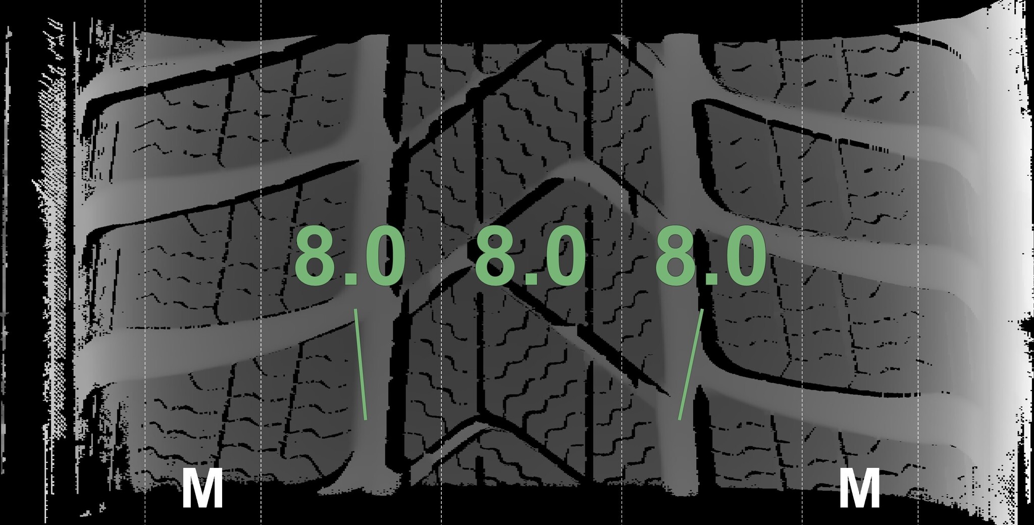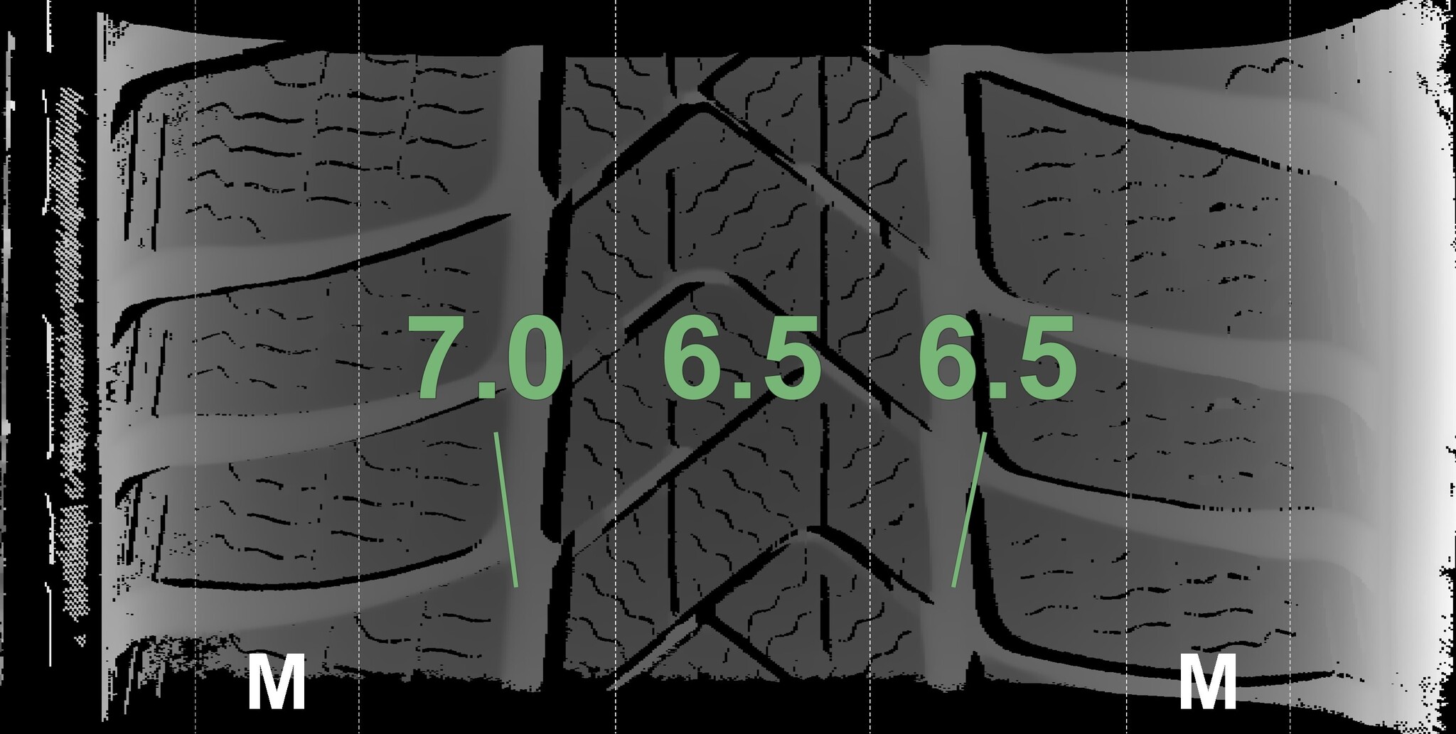 The measured tread depths and details of the rims are shown above.