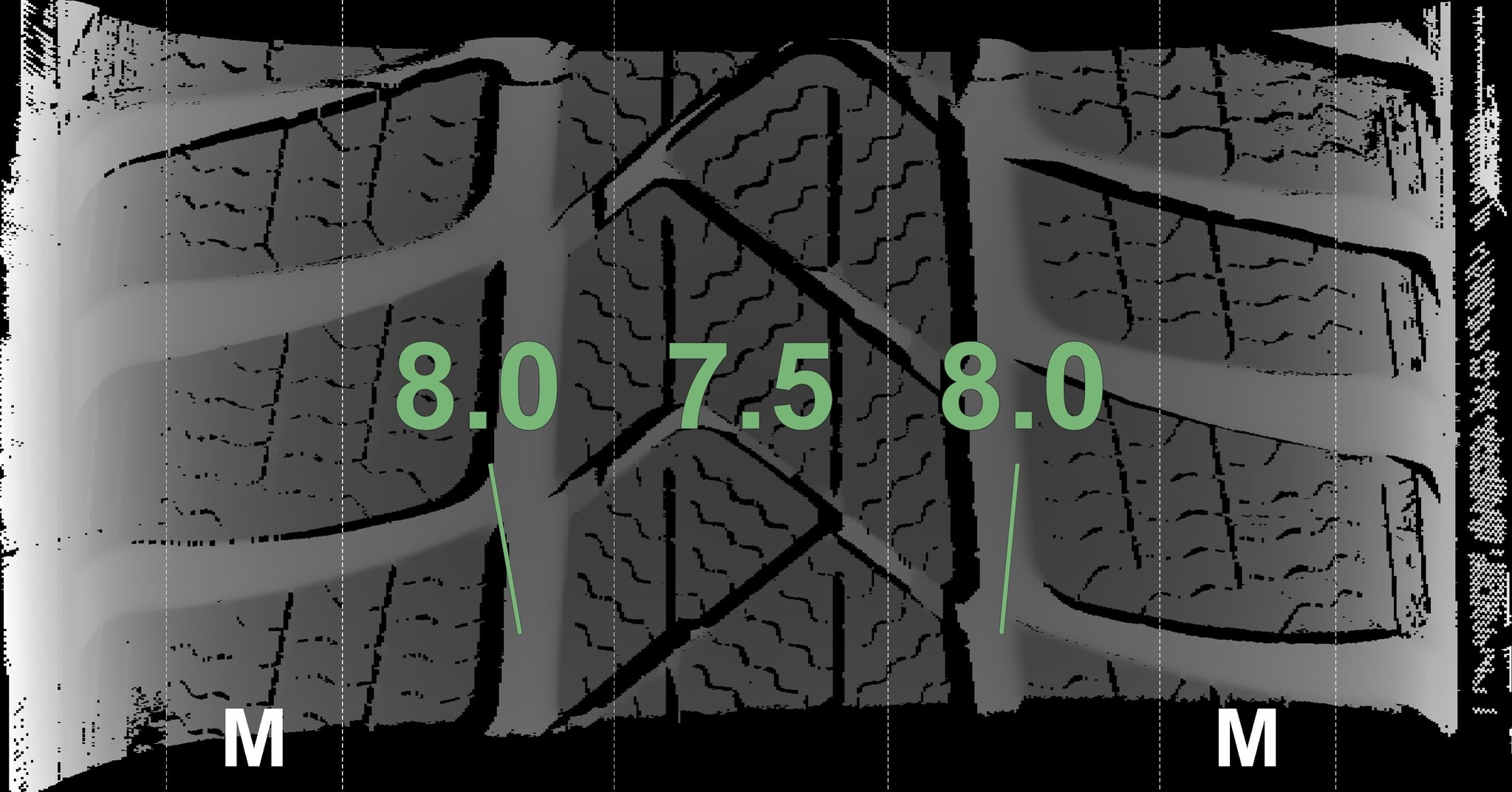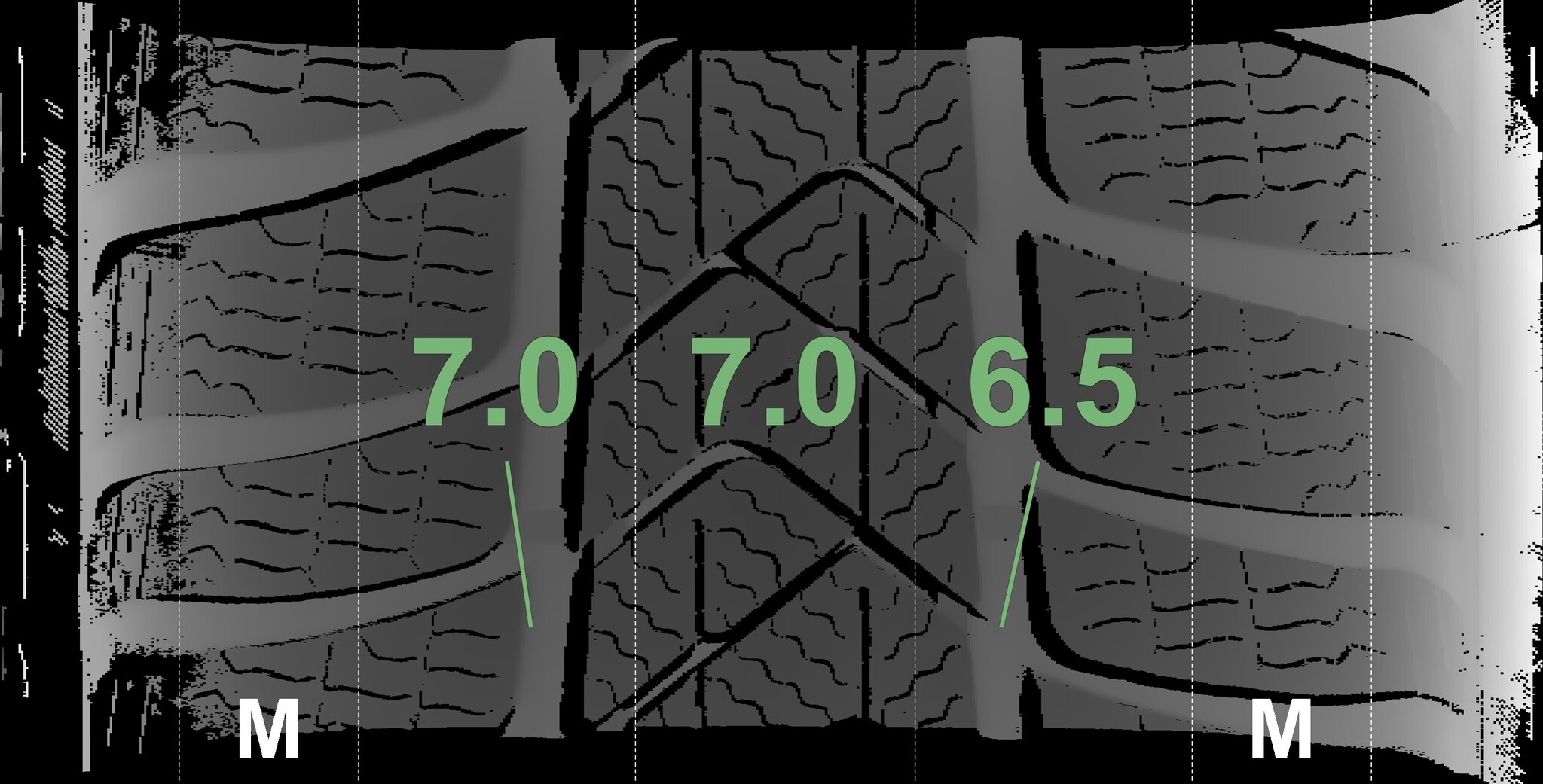 | Condition | Profile depth | DOT | Front Right | Used | 6.5 mm | 4121 |