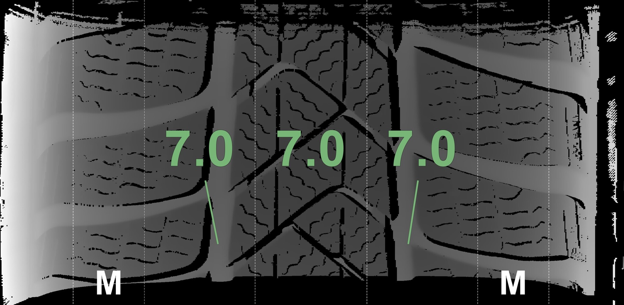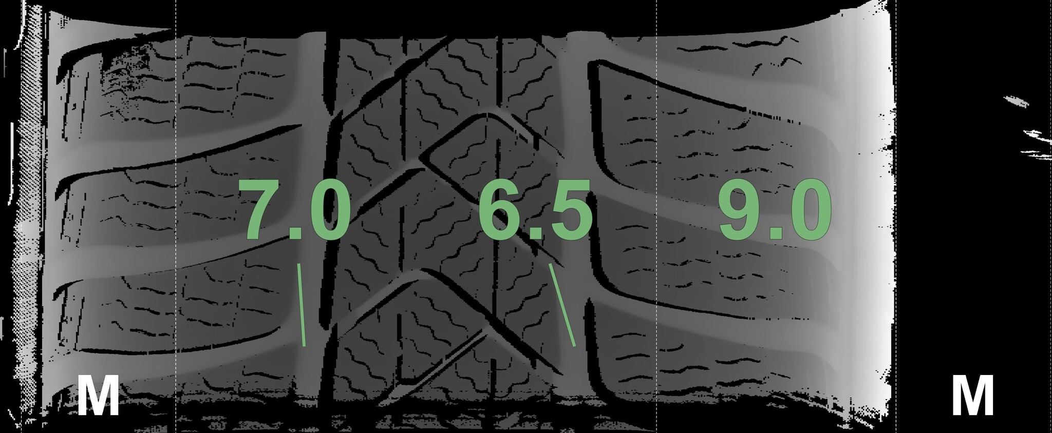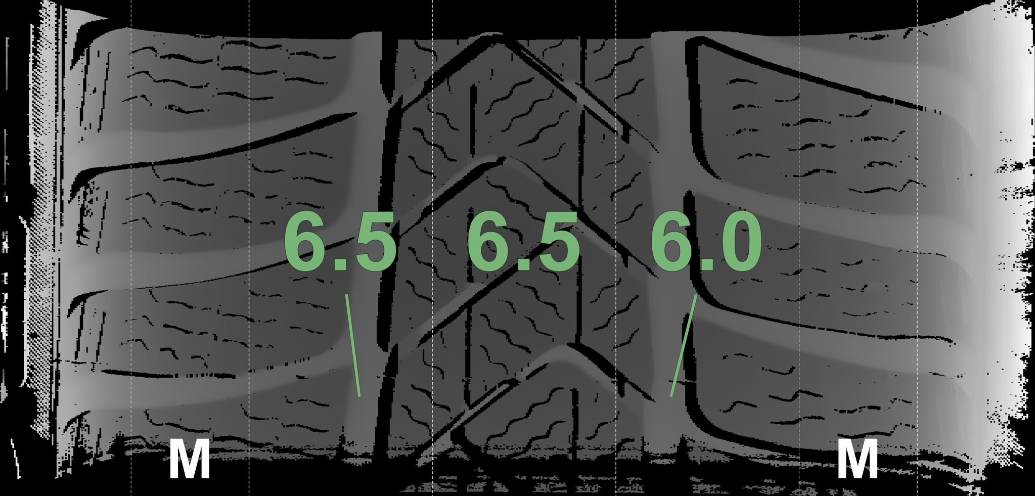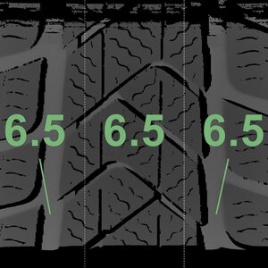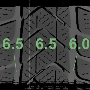 The measured tread depths and the details of the rims are shown above.