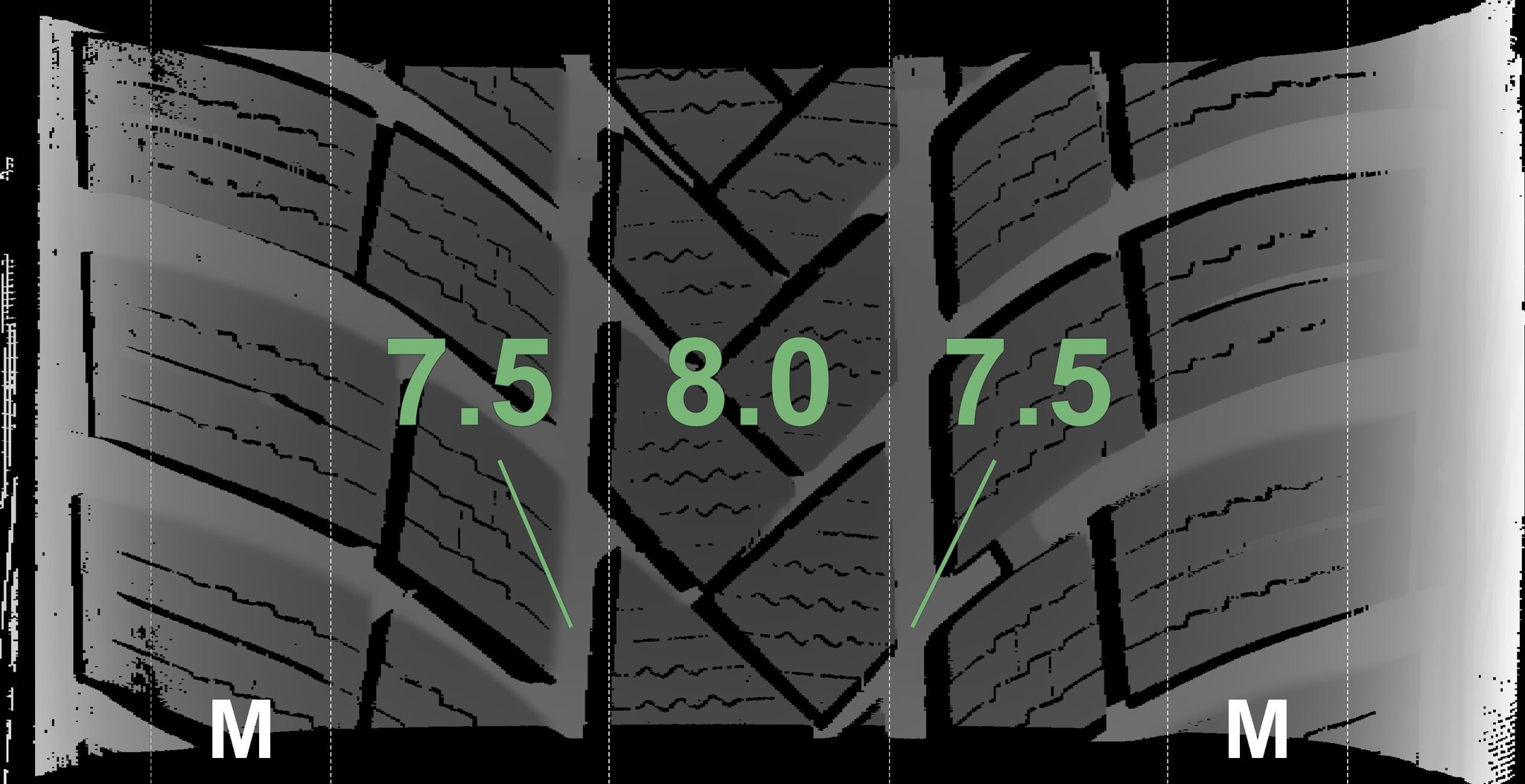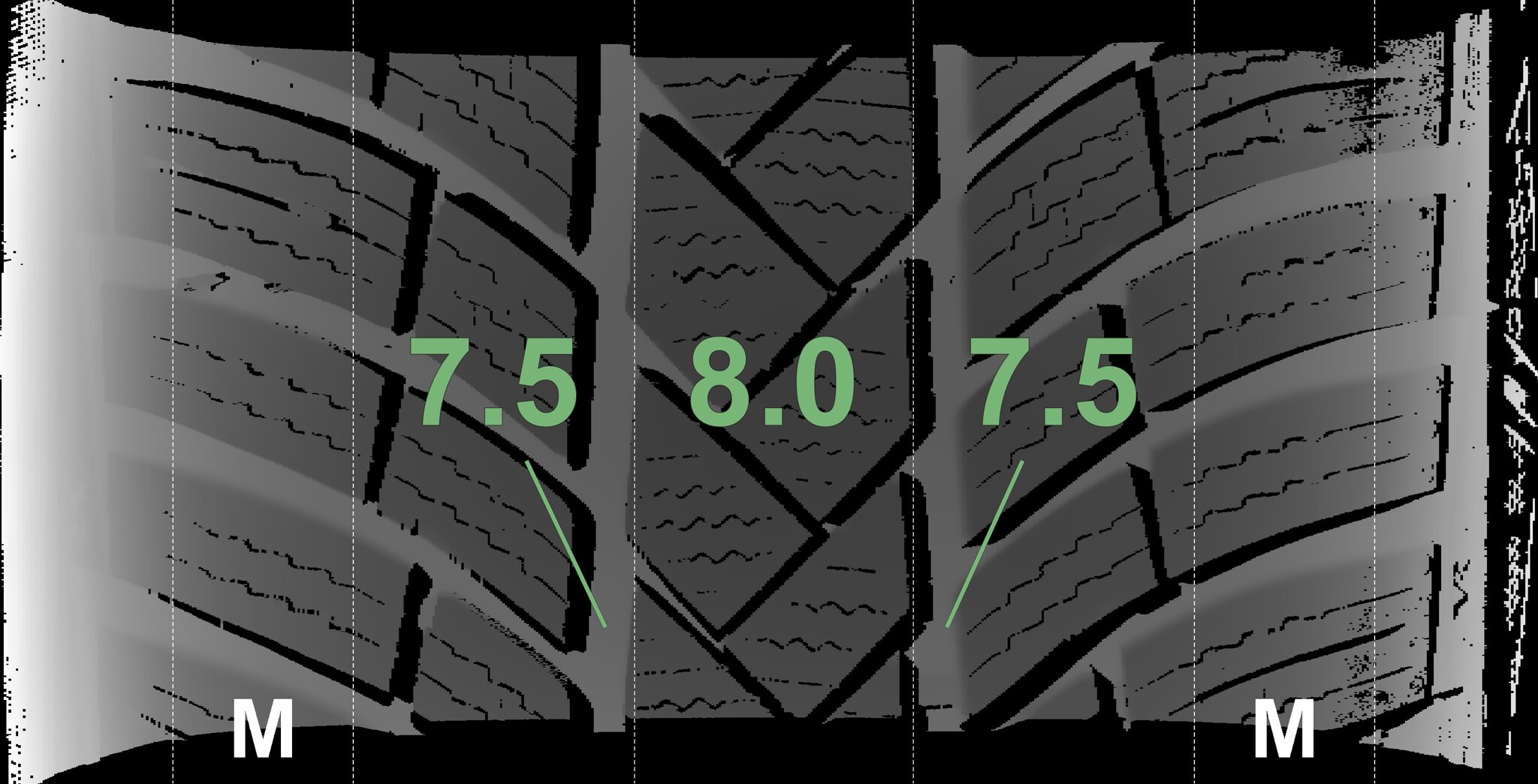 The measured tread depths and details of the rims are shown above.