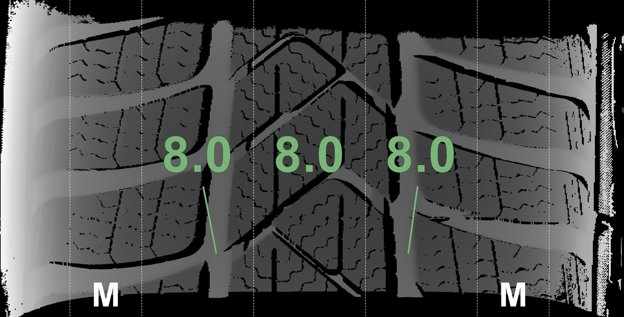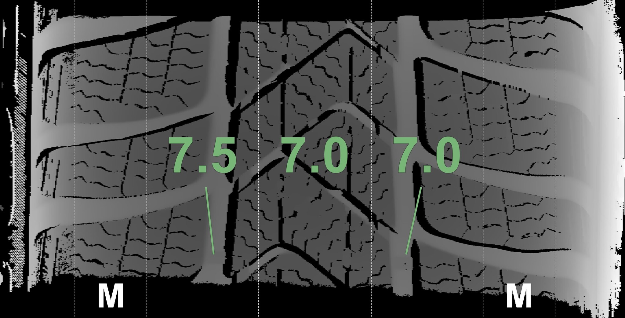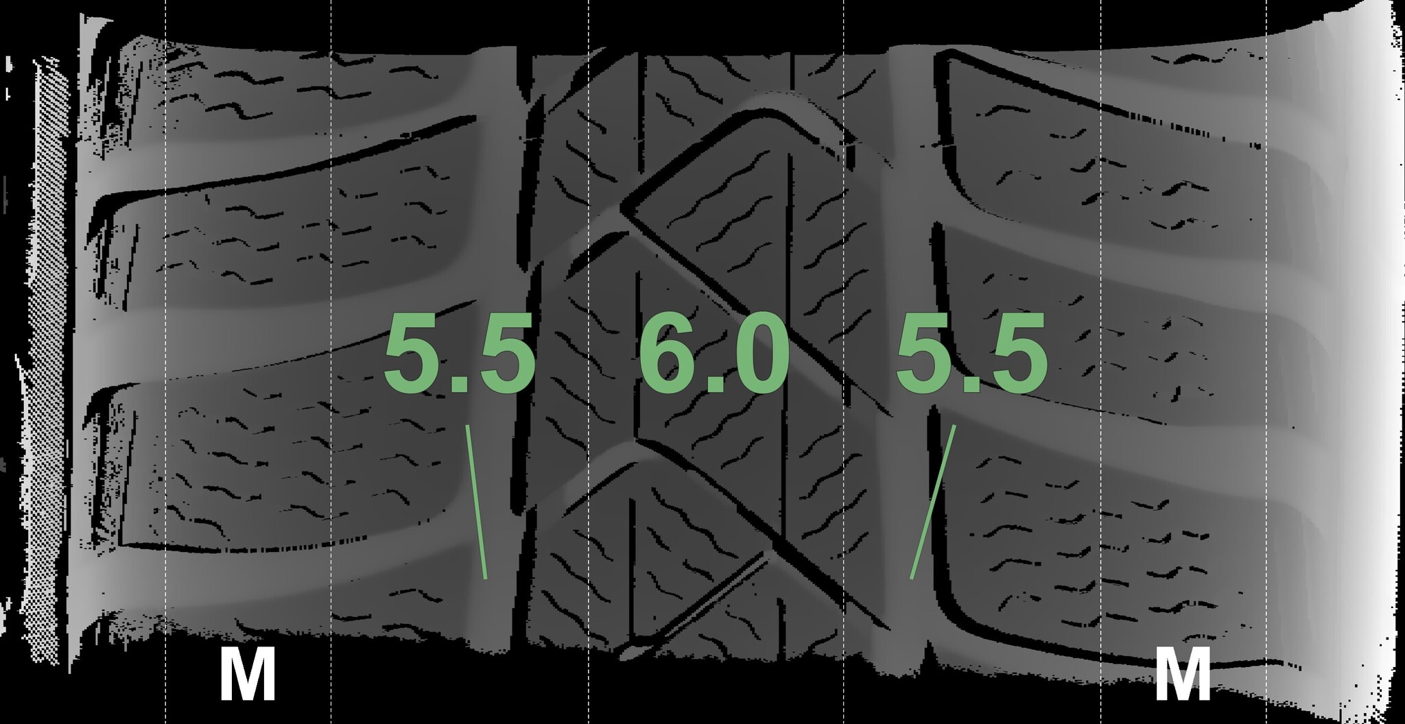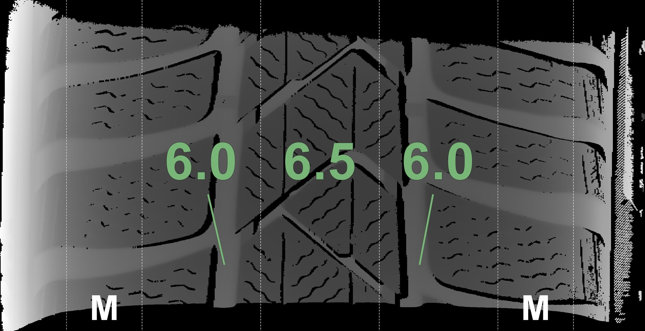 The measured tread depths and the details of the wheels are shown above.