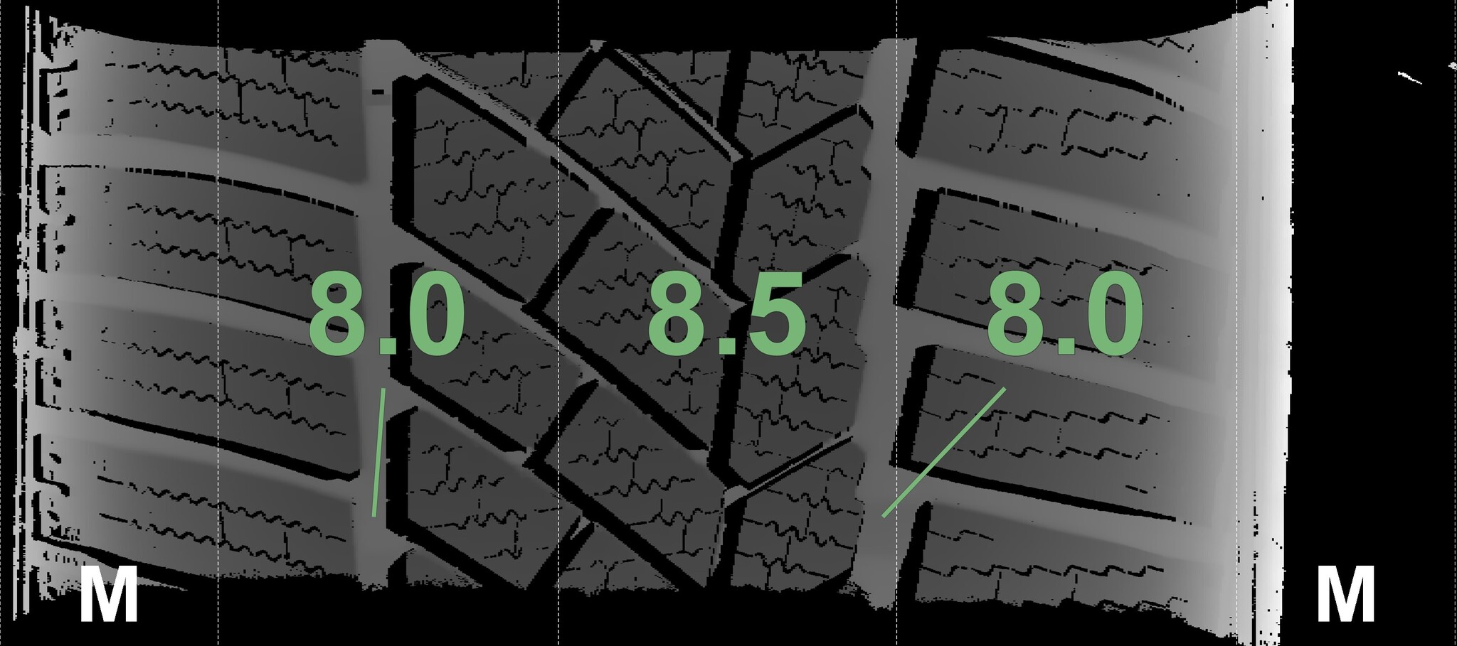 | Condition | Profile depth | DOT | Rear Right | New | 8.0 mm | 1821 |
