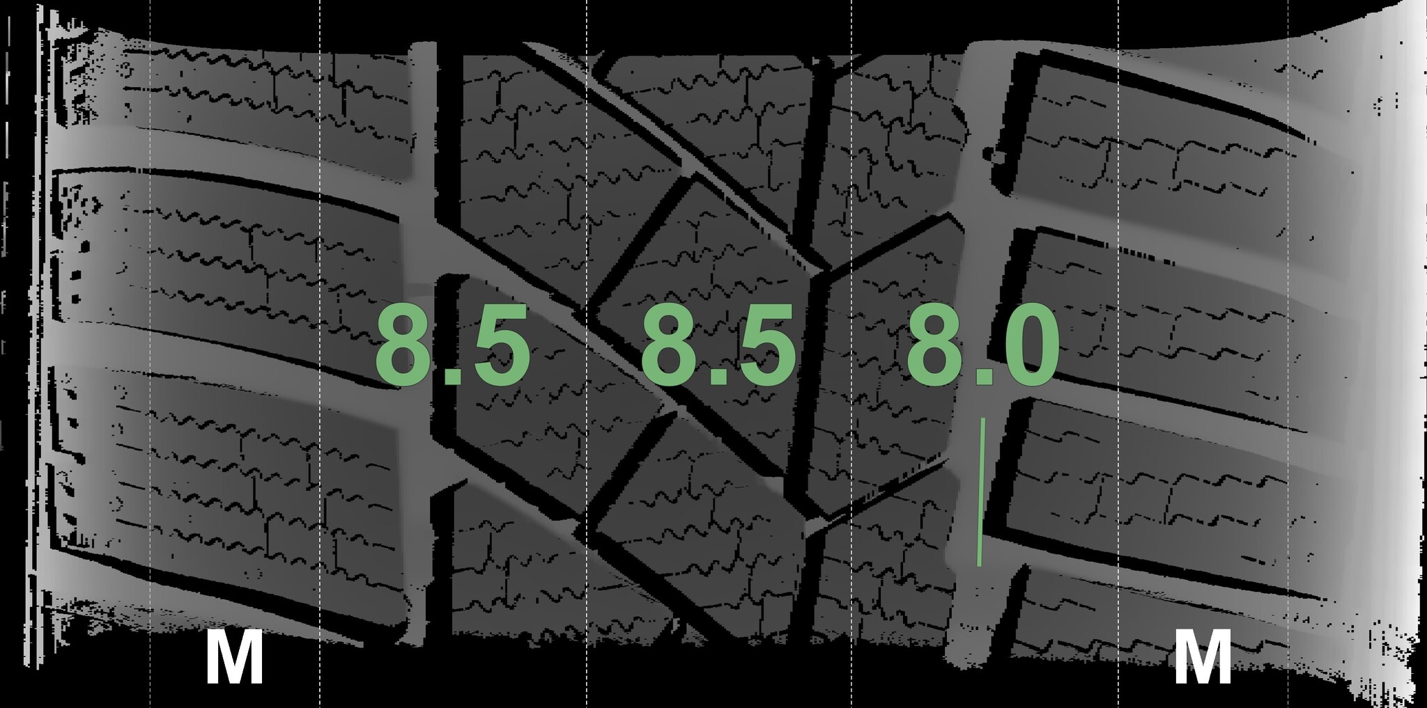 | Condition | Profile depth | DOT | Rear Right | New | 8.5 mm | 3325 |
