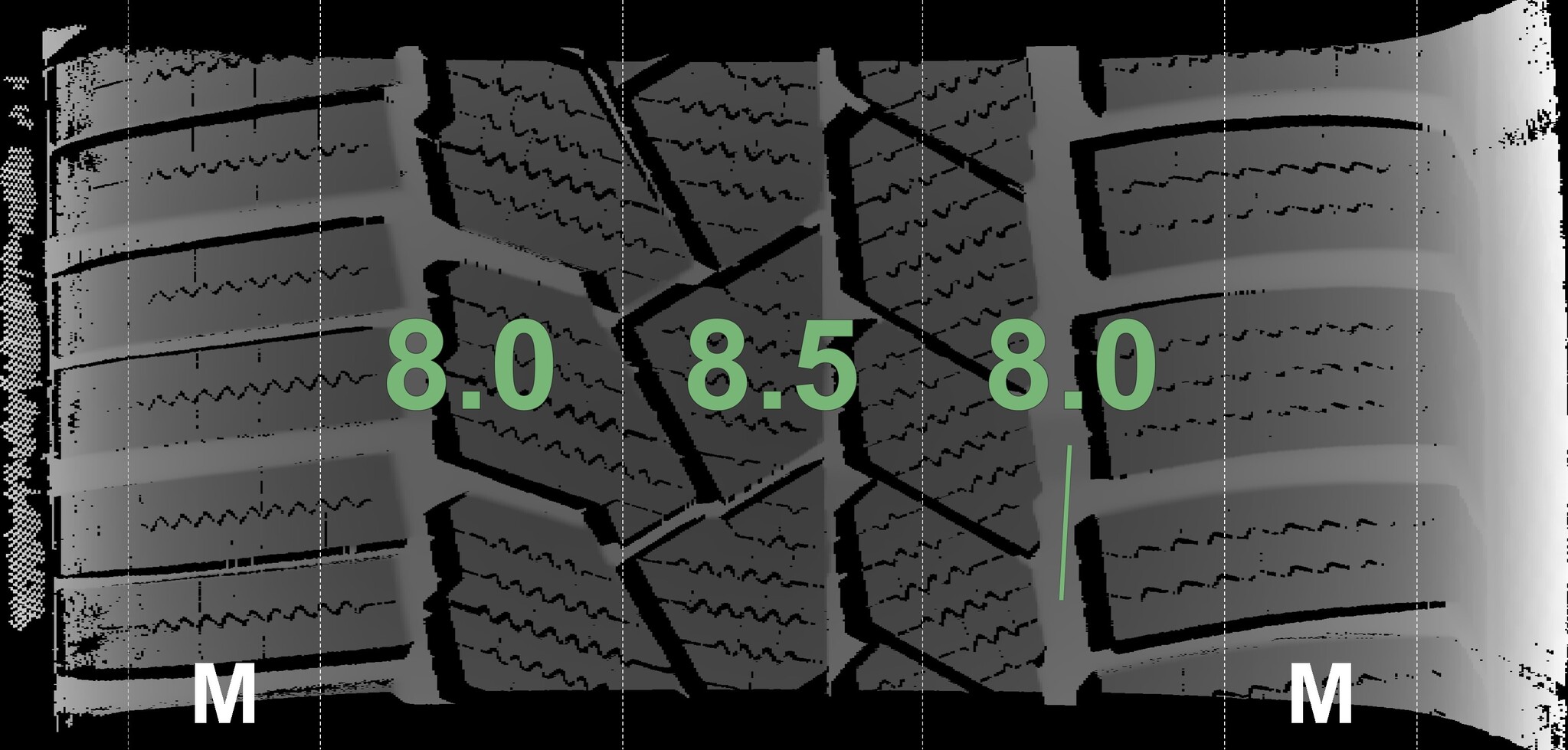 Condition | Profile depth | DOT | Front Right | New | 8.0 mm | 5020 |