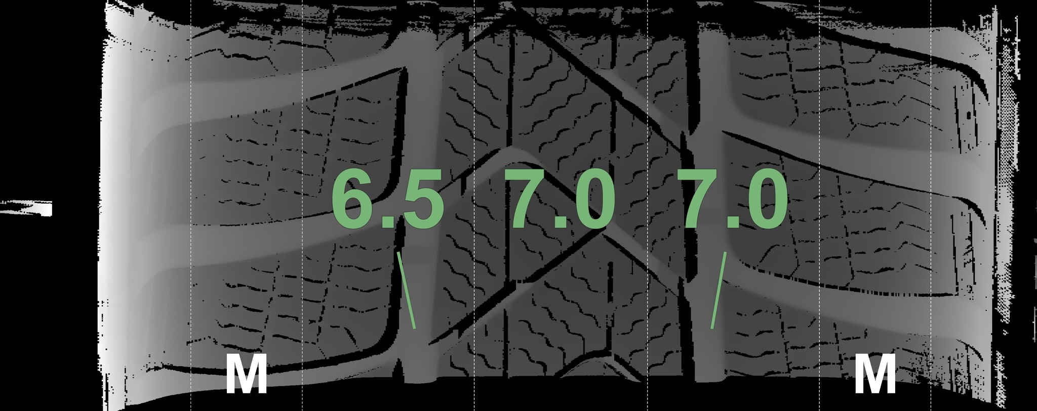 | Condition | Profile depth | DOT | Front Left | Used | 6.5 mm | 4320 |