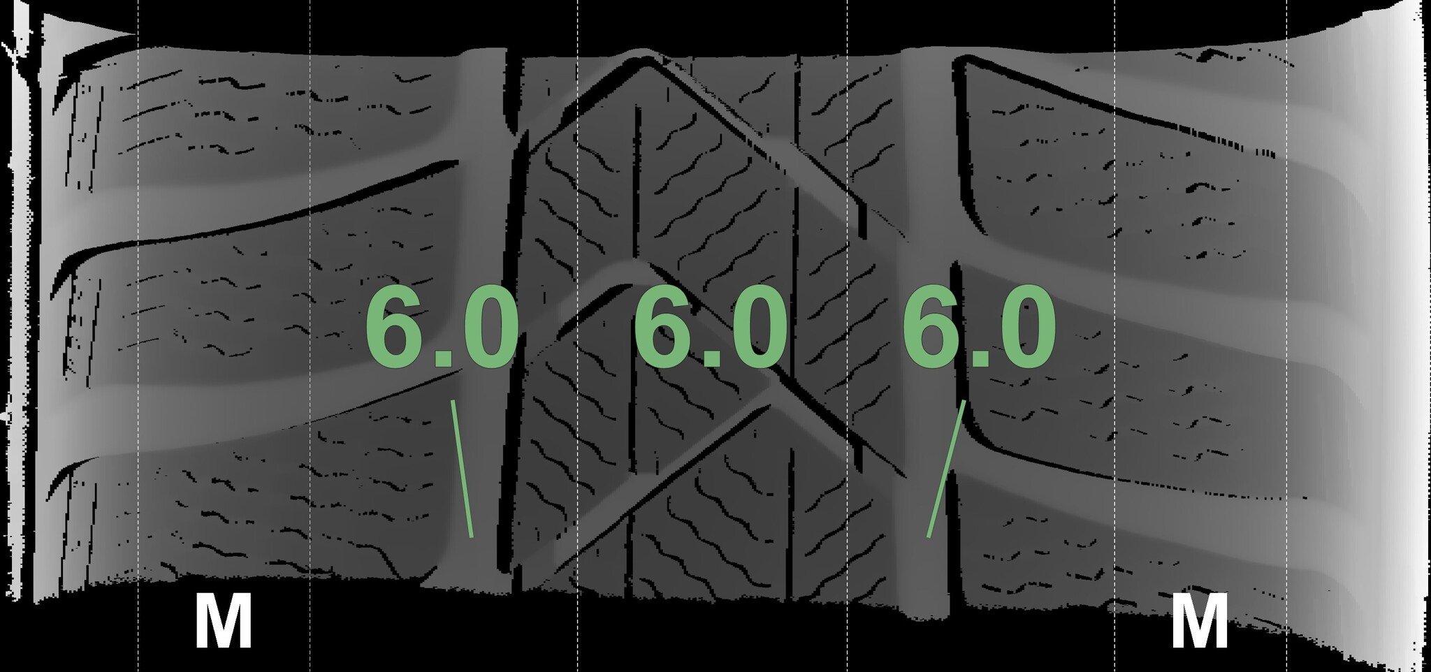 The measured tread depths and the details of the rims are shown above.