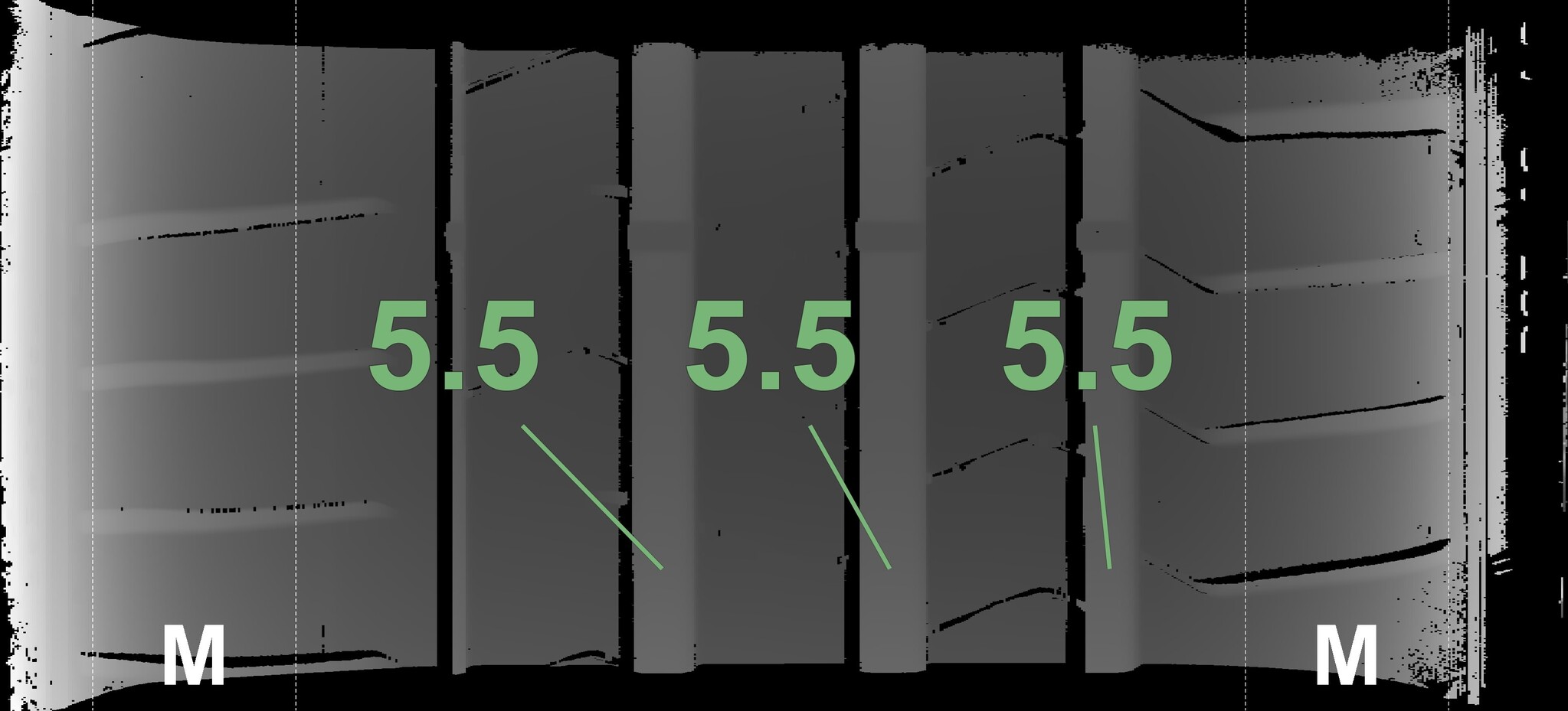 Condition | Profile depth | DOT | Rear Left | New | 5.5 mm | 2025 |