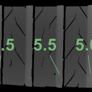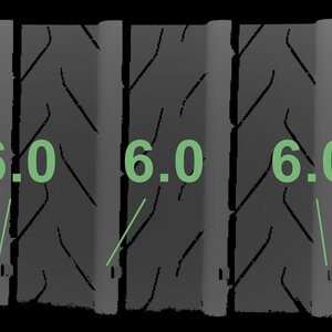 The measured tread depths and the details of the rims are shown above.
