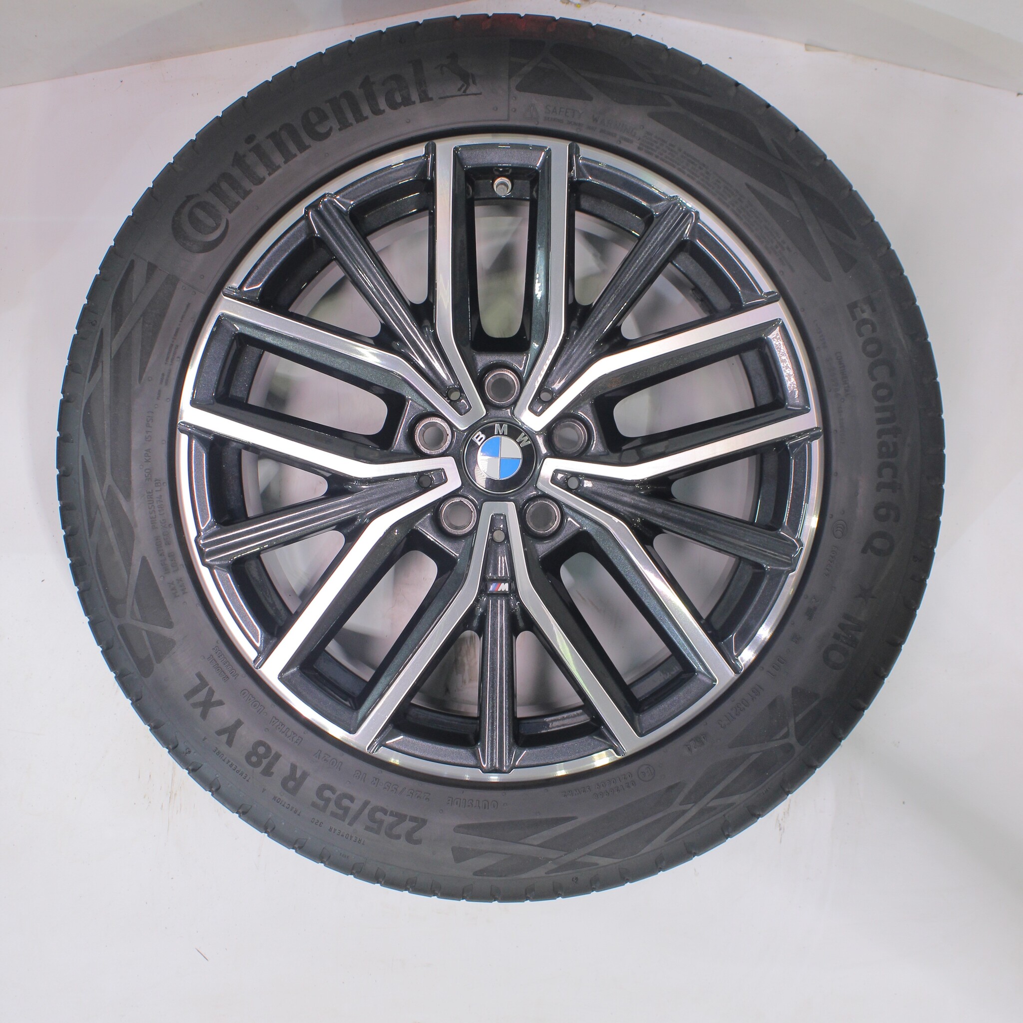 Original BMW wheel set, styling 838M, 18-inch rims with Continental Ecocontact6 Q Summer tires. These rims are original BMW brand rims and suitable for: BMW X1 iX1 U11 BEV X2 iX2 U10.