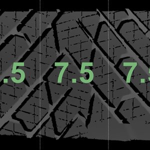 The measured tread depths and the details of the rims are shown above.