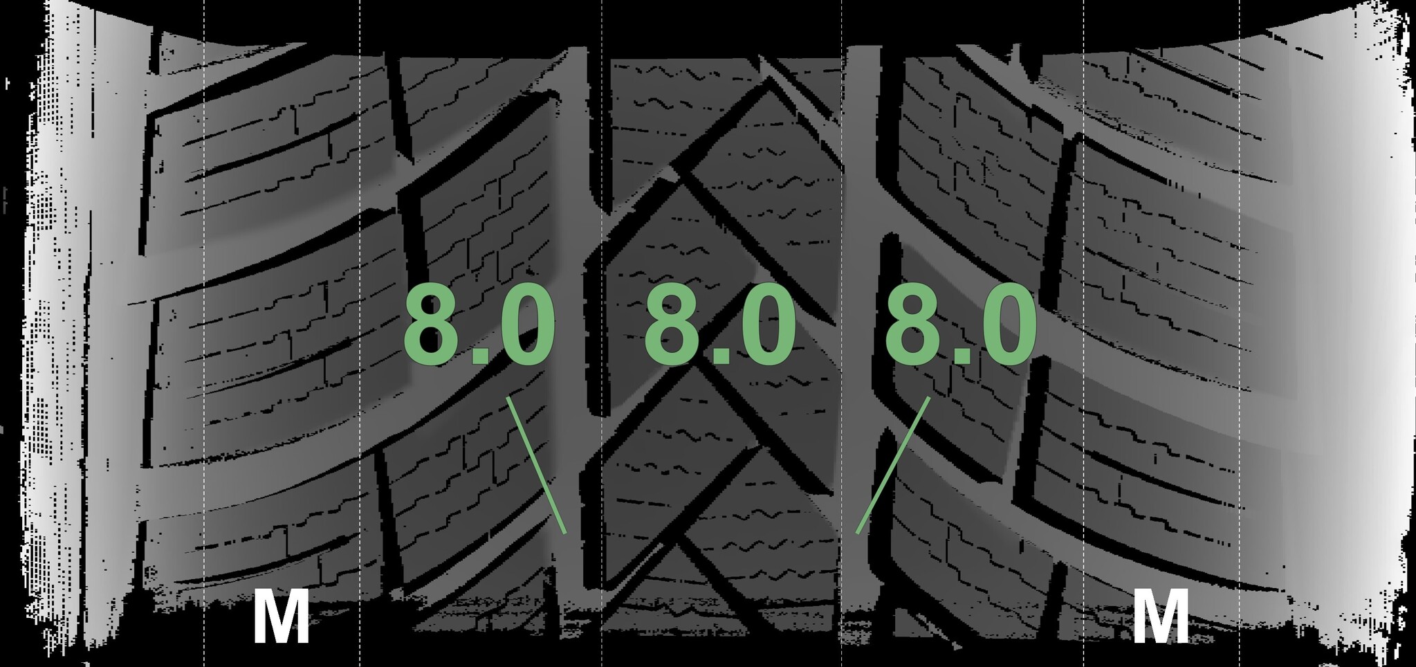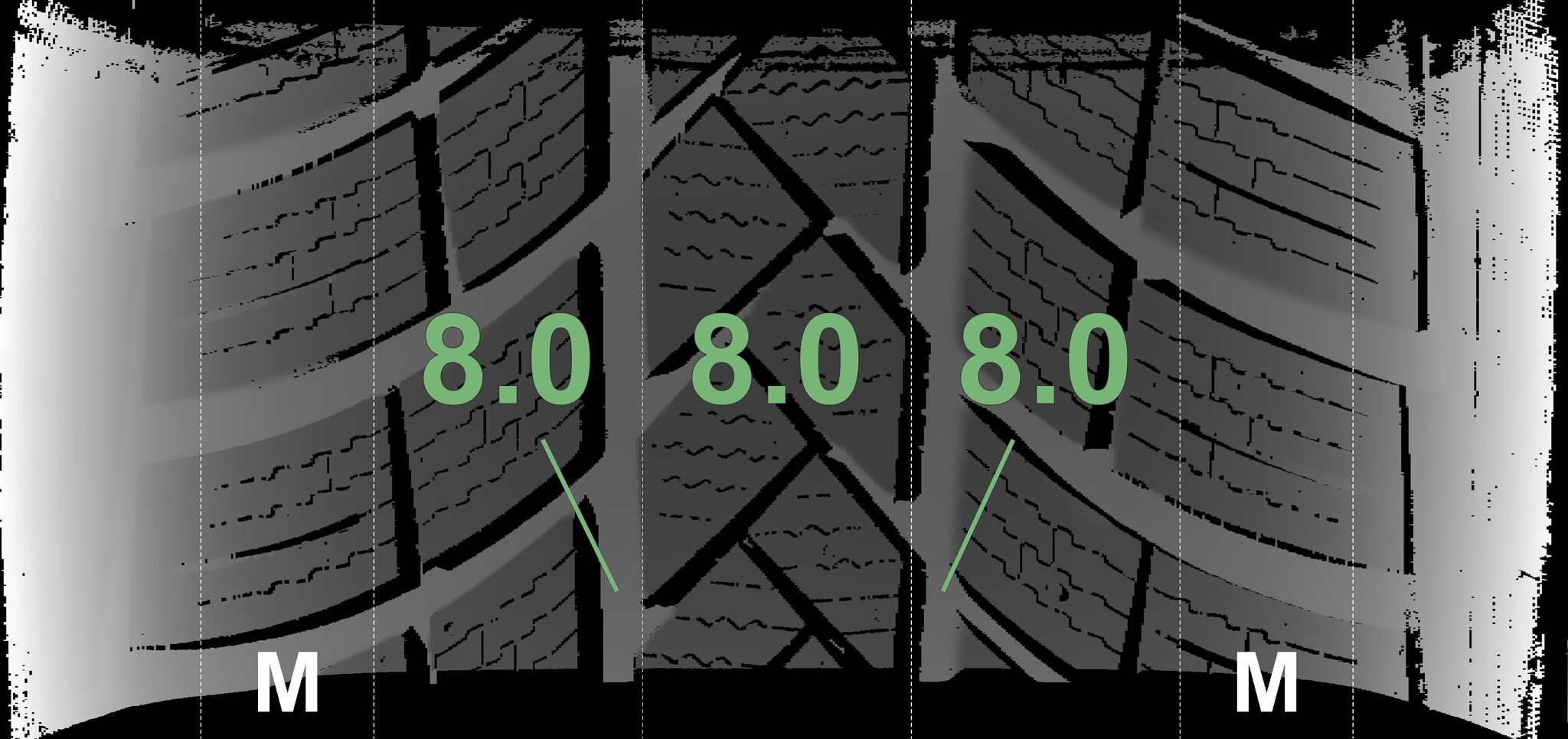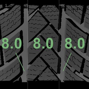 The measured tread depths and the details of the rims are shown above.