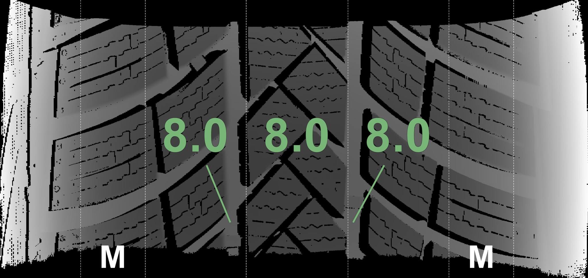 | Condition | Profile depth | DOT | Front Left | New | 8.0 mm | 4725 |