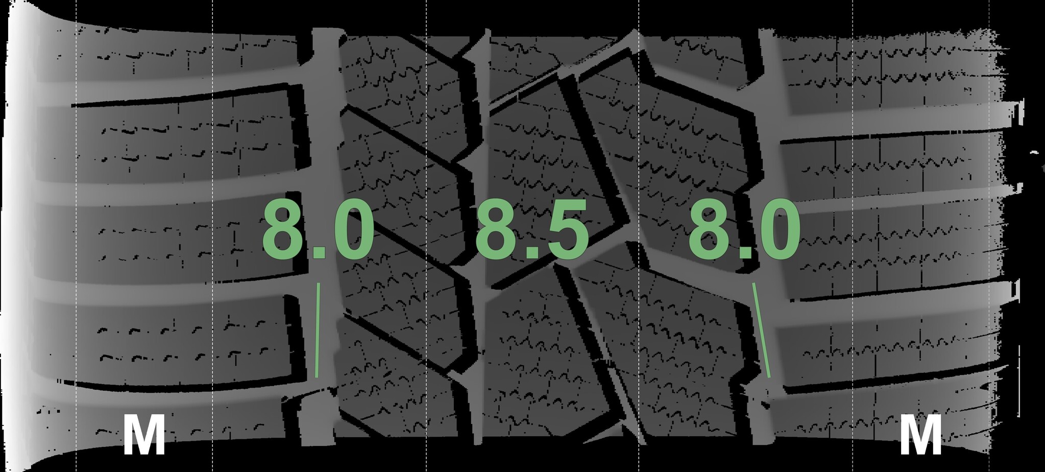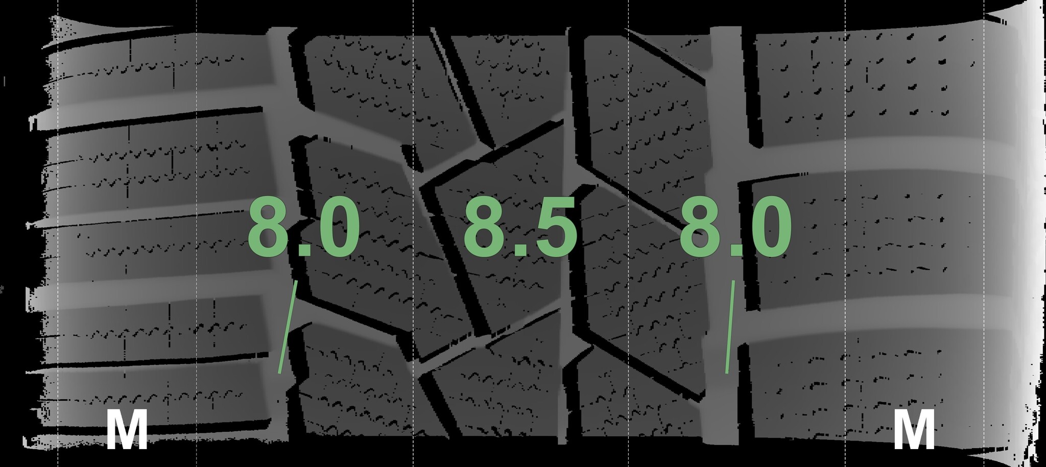 | Condition | Profile depth | DOT | Front Right | New | 8.2 mm | 0822 |
