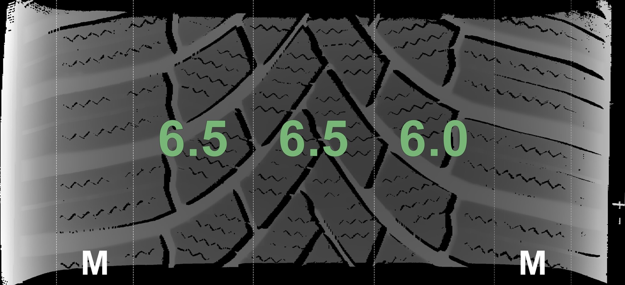 | Condition | Profile depth | DOT | Front Left | Used | 6.3 mm | 3422 |