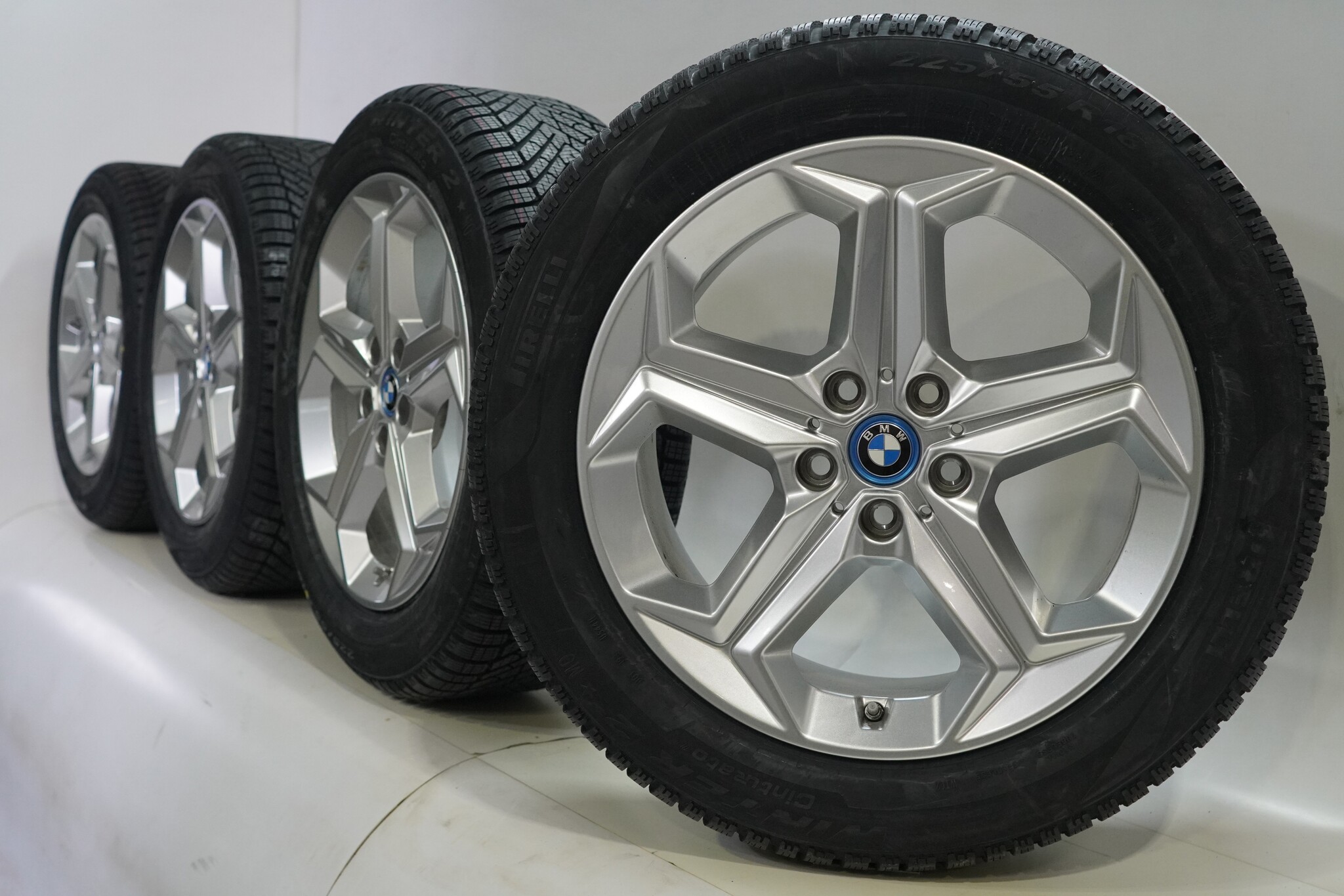 Original BMW wheelset, styling 865, 18-inch rims with Pirelli Winter Cinturato 2 winter tires. These rims are original BMW brand rims and suitable for: BMW X1 iX1 U11 BEV X2 iX2 U10.