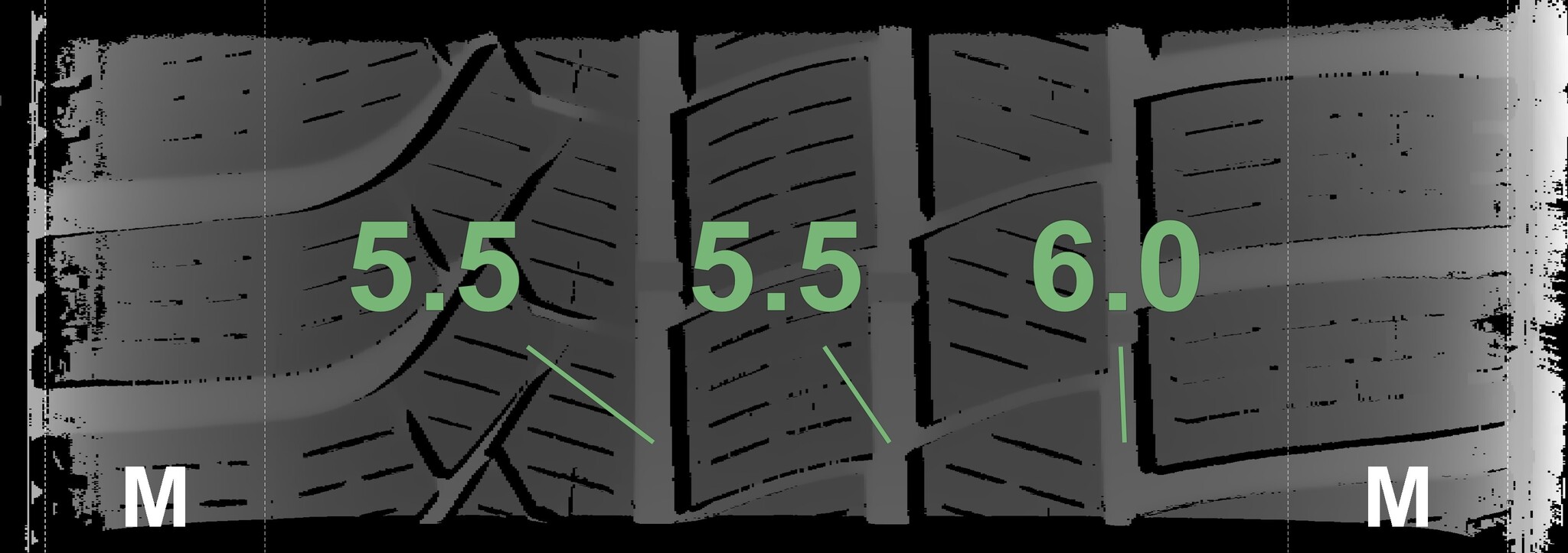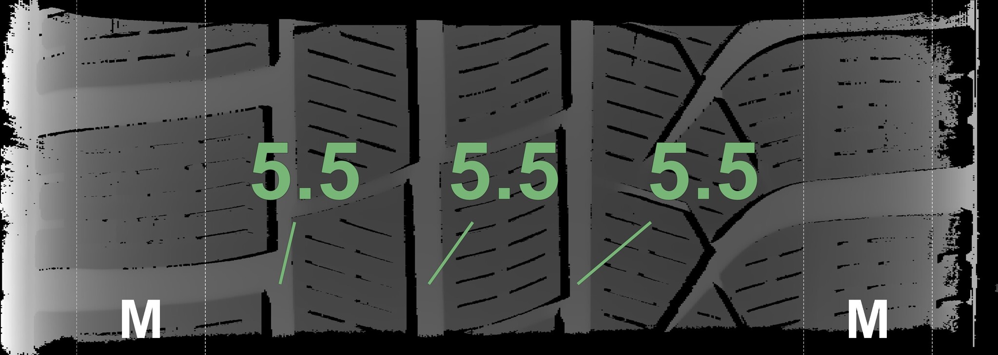 Condition | Profile depth | DOT | Front Left | Used | 5.5 mm | 3024 |