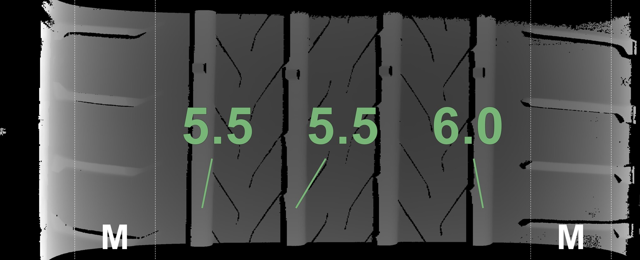| Condition | Profile depth | DOT | Front Left | Used | 5.5 mm | 5023 |